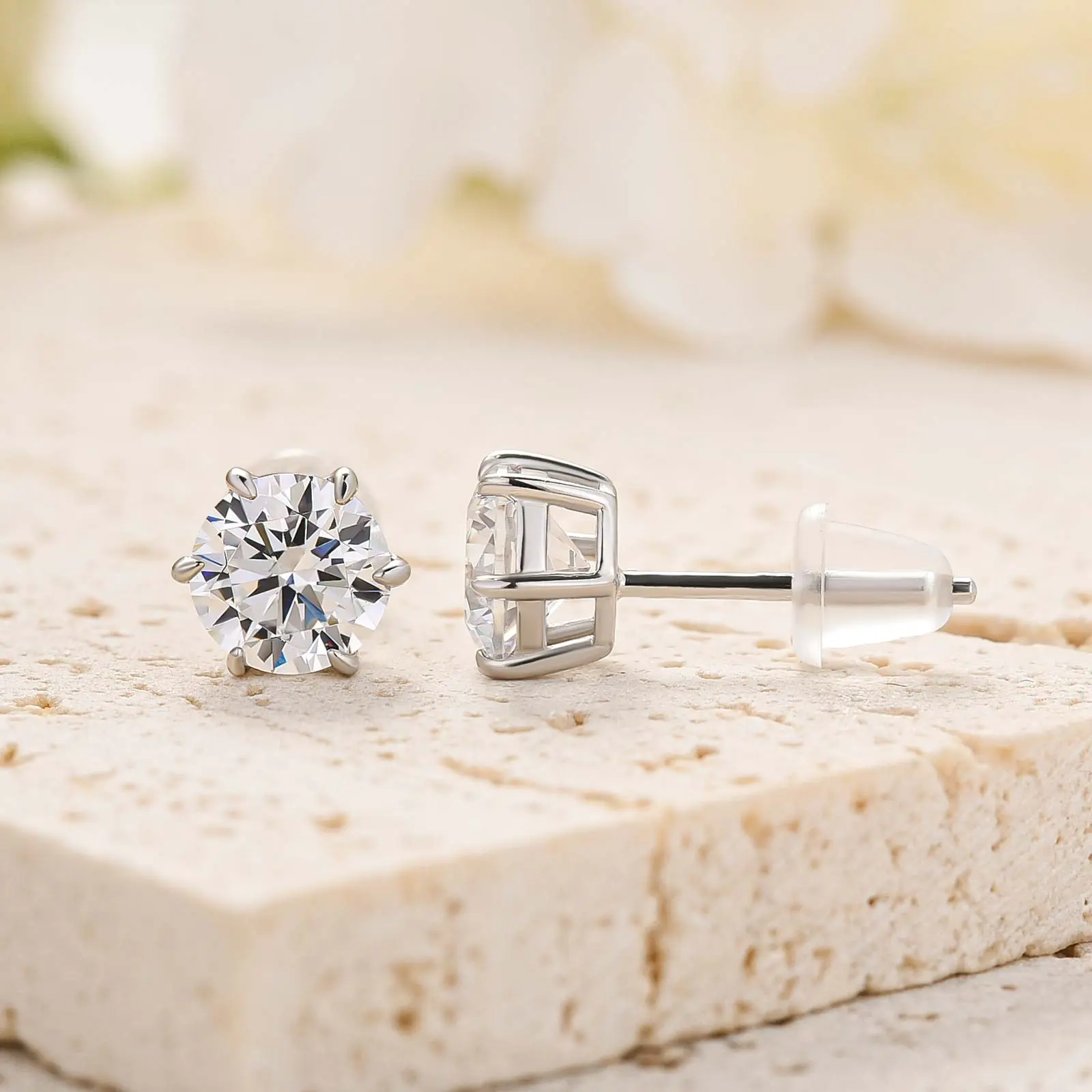 Maxine Jewelry 925 Sterling Silver 1.2ct 7mm Round Cut 5A Cubic Zirconia Stud Earrings For Women
