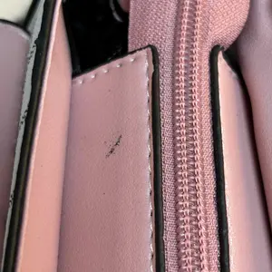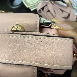 My purse came with like a sticky substance on the top of it. It was also ripped on the top and smelled like straight chemicals.