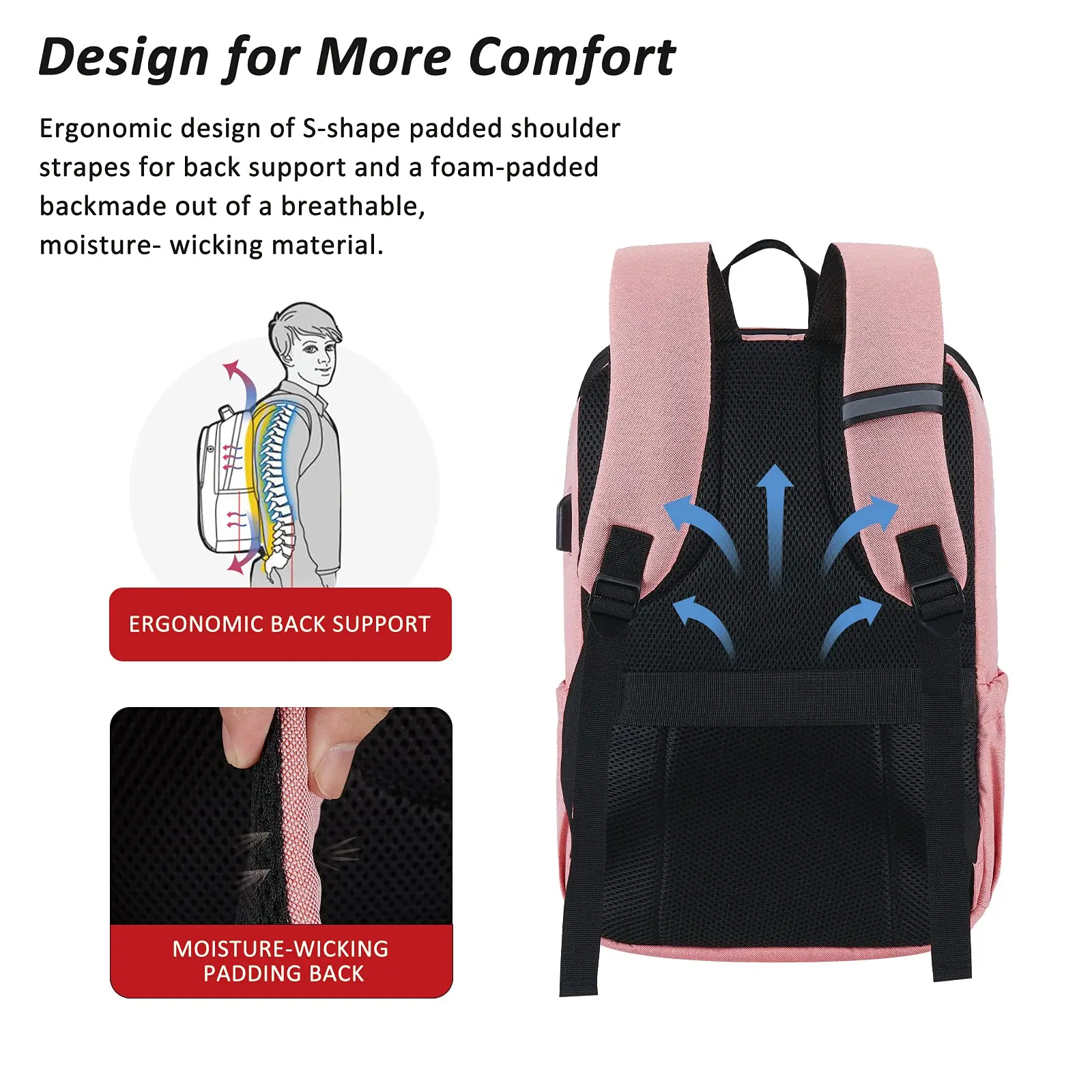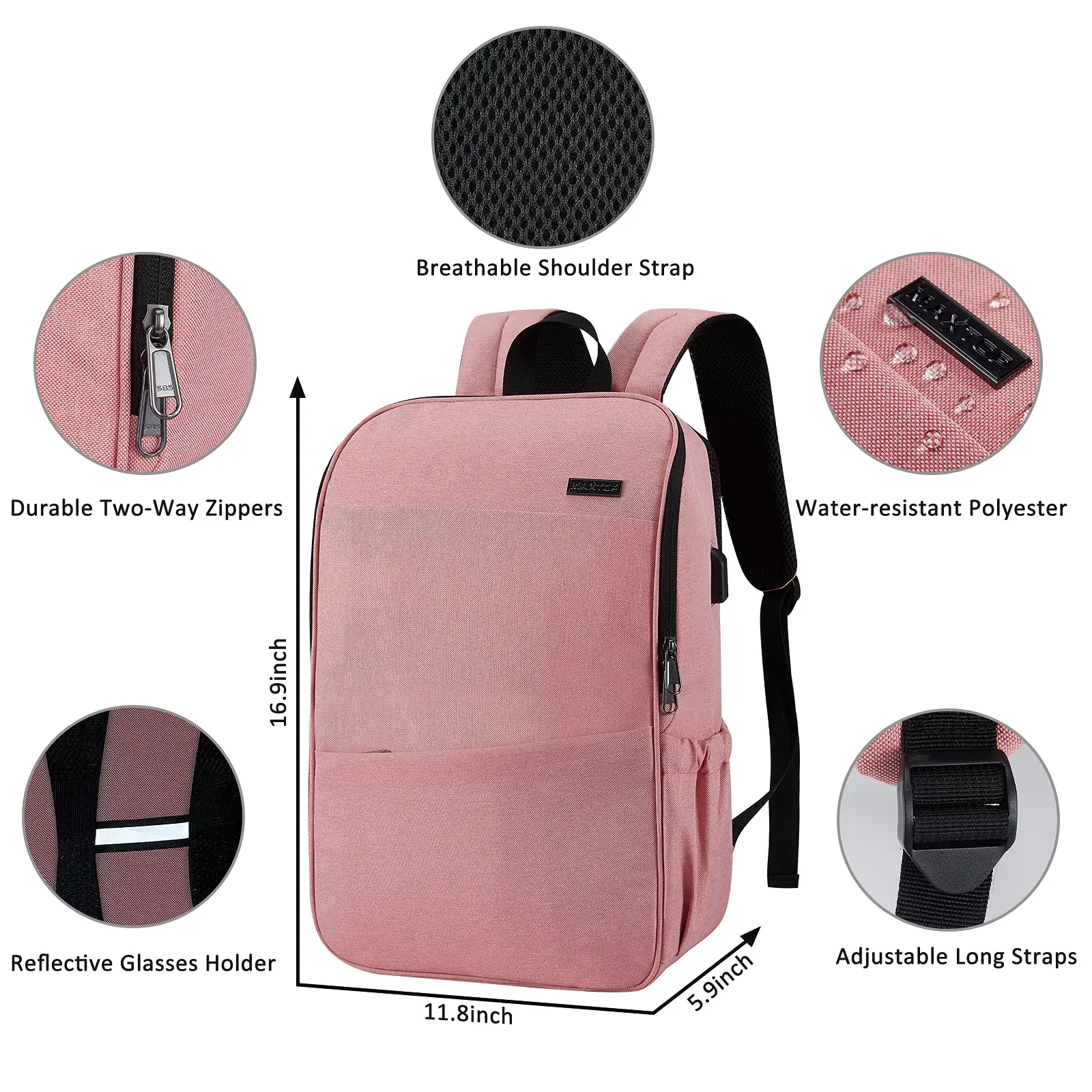 ·FRONT ZIPPER POCKET and 2 SIDE POCKETS can hold pencil box