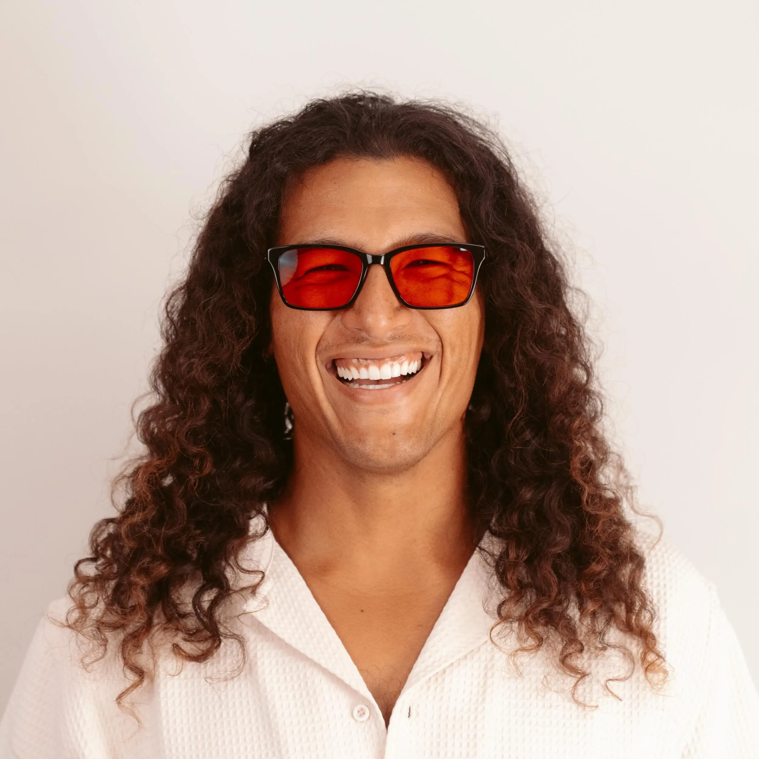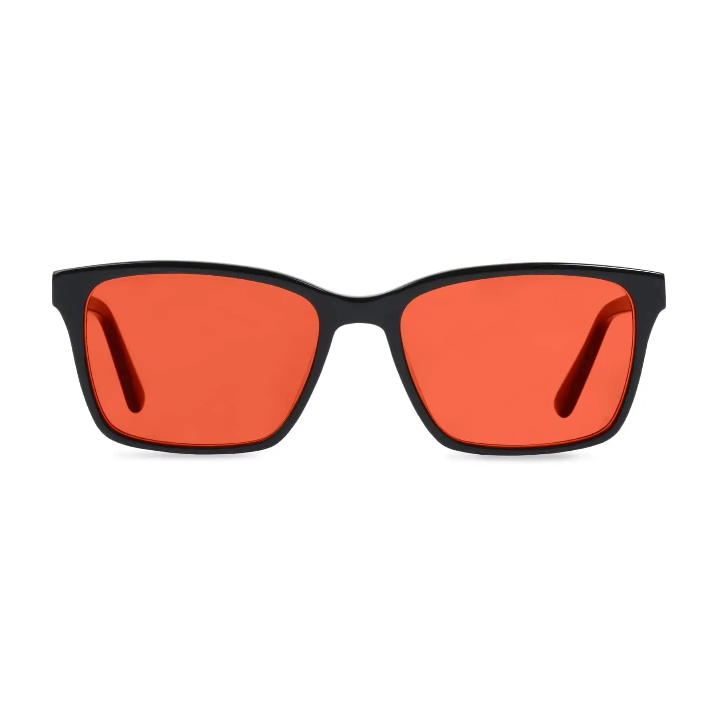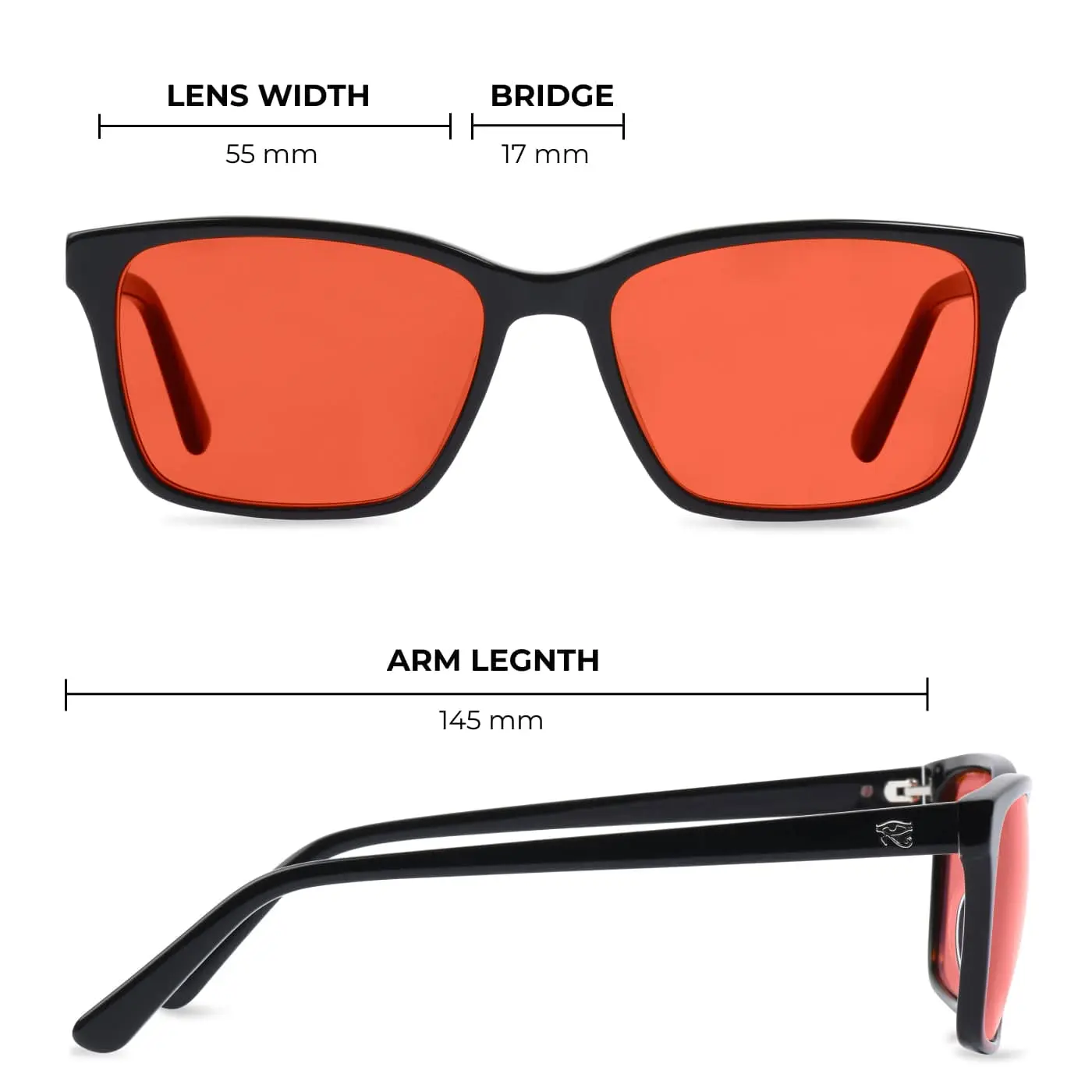 A sporty rectangular frame with a straight browline, sleek arms, and a clear saddle bridge. This black frame with a subtle glossy-finish is for those looking to make a statement. The frame is made of acetate (a natural, plant-derived material).