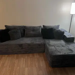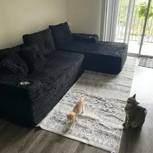 I just received my boneless sectional couch today, and I love it! The hardest part was getting it out of the box. It is bigger than I expected for my small apartment, but I will make it work. I definitely give this couch a 5 Star Rating…I Absolutely Love It❤️ Material: Soft Assembly: Very Easy Design: Perfect Characteristics: Family Oriented
