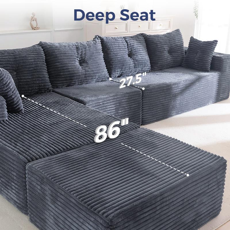·Spacious U-Shaped Comfort: Generously sized with a deep, enveloping U layout, this modular sofa provides ample space for the whole family to lounge together. Stretch out, curl up, or lie down — perfect for entertaining guests or enjoying an afternoon nap. The oversized design brings a luxurious sense of scale and relaxation to your living room