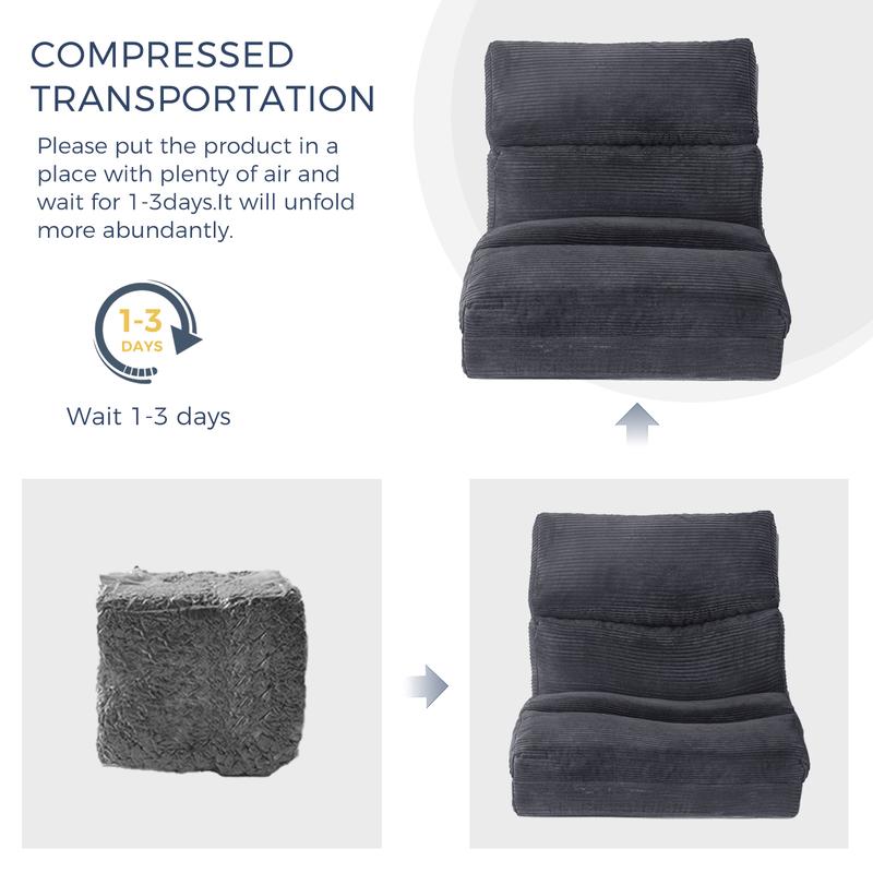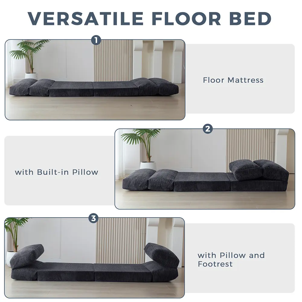Transform your space in seconds! This versatile piece easily folds into a compact sofa for daily lounging and unfolds into a spacious extra-wide floor bed—perfect for overnight guests, movie nights, or small apartments.