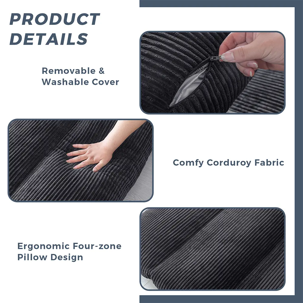 Keep it fresh effortlessly! The dark grey corduroy cover is removable and machine washable. Spills and stains are no worry—just unzip, wash, and reassemble for a clean, cozy lounger every time.