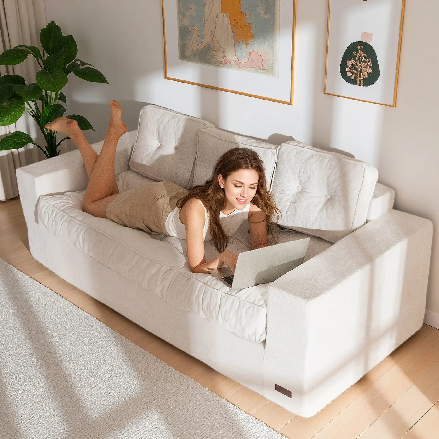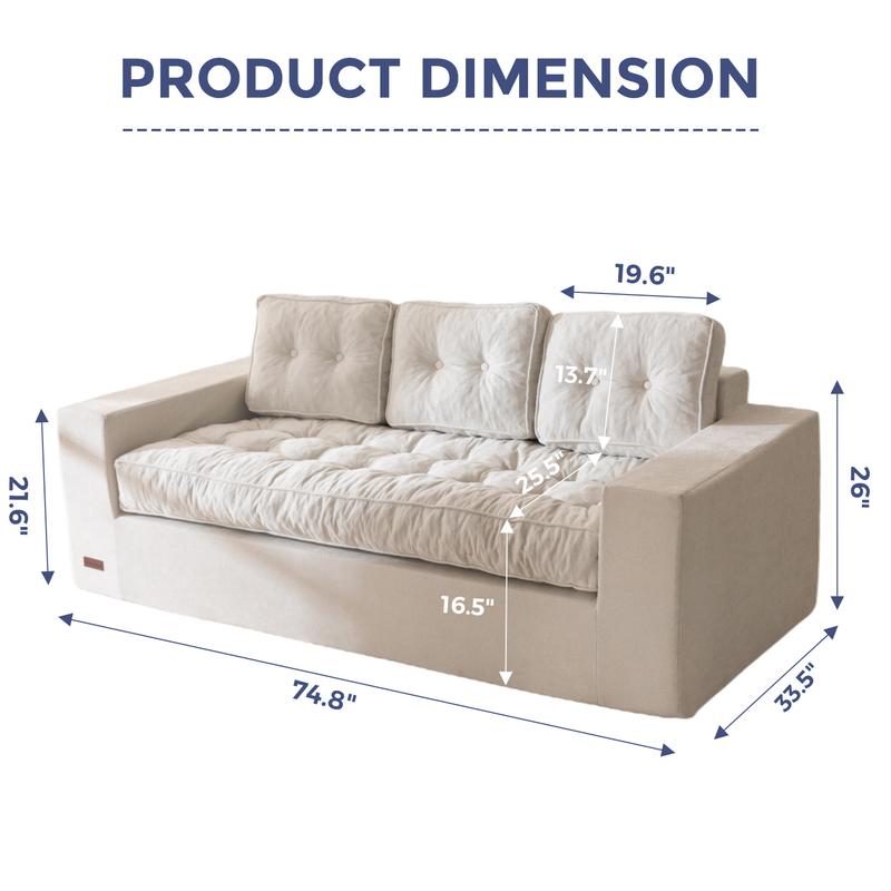 Measuring 74.8" x 33.5" x 21.5", this space-saving sofa offers a cozy lounging solution for: