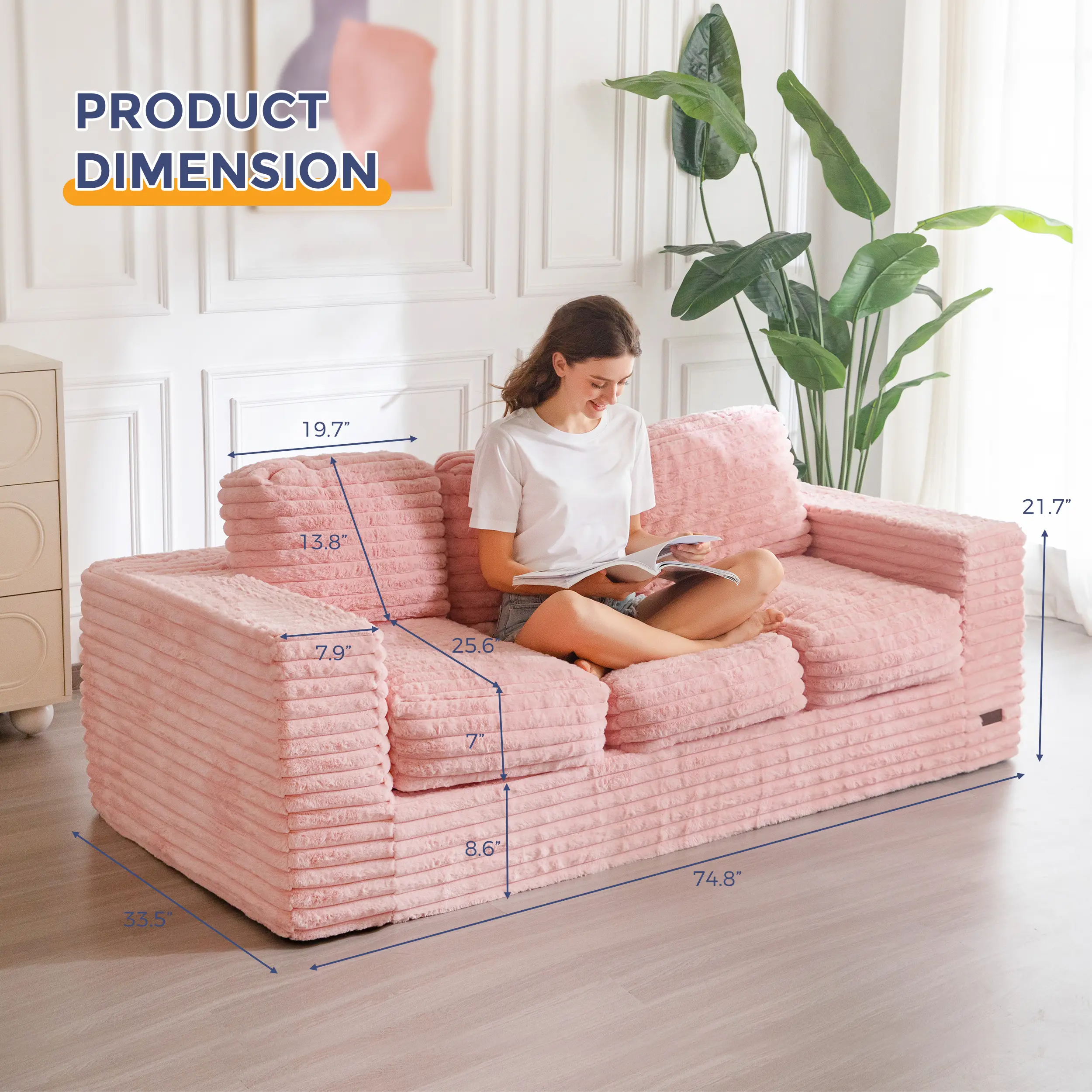 Filled with high-density elastic foam, the sofa provides the perfect balance between plush softness and firm support.