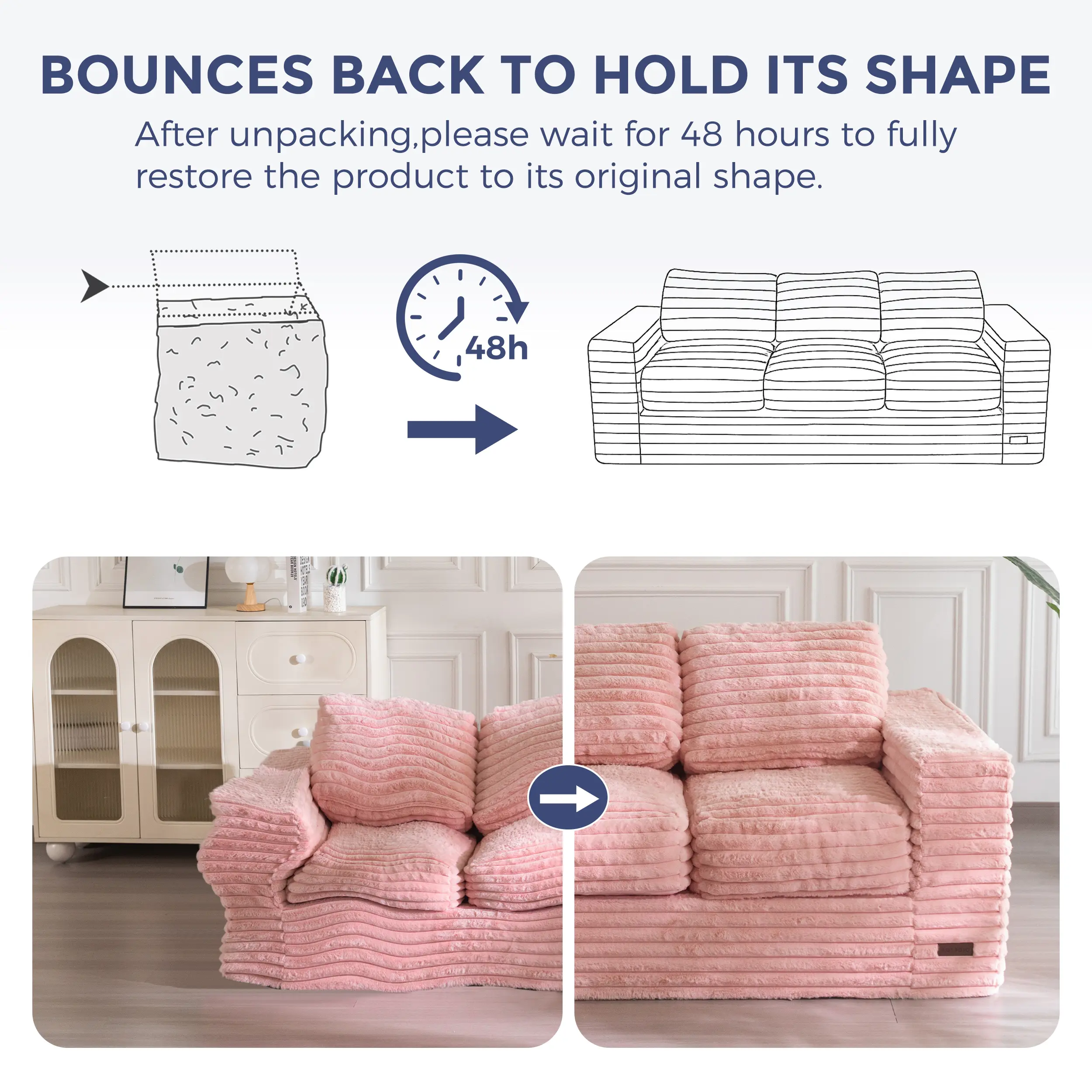 Cushions rebound quickly after sitting