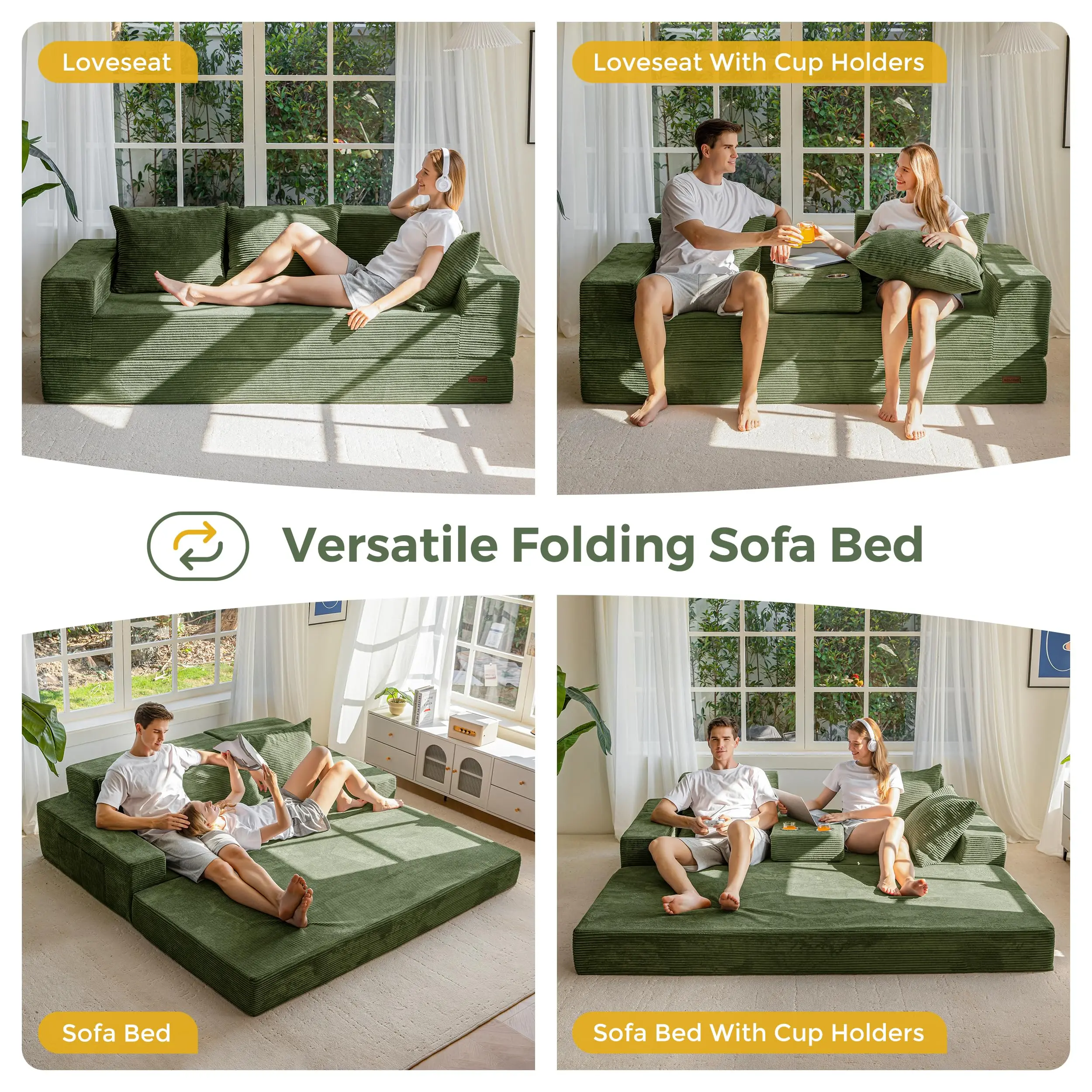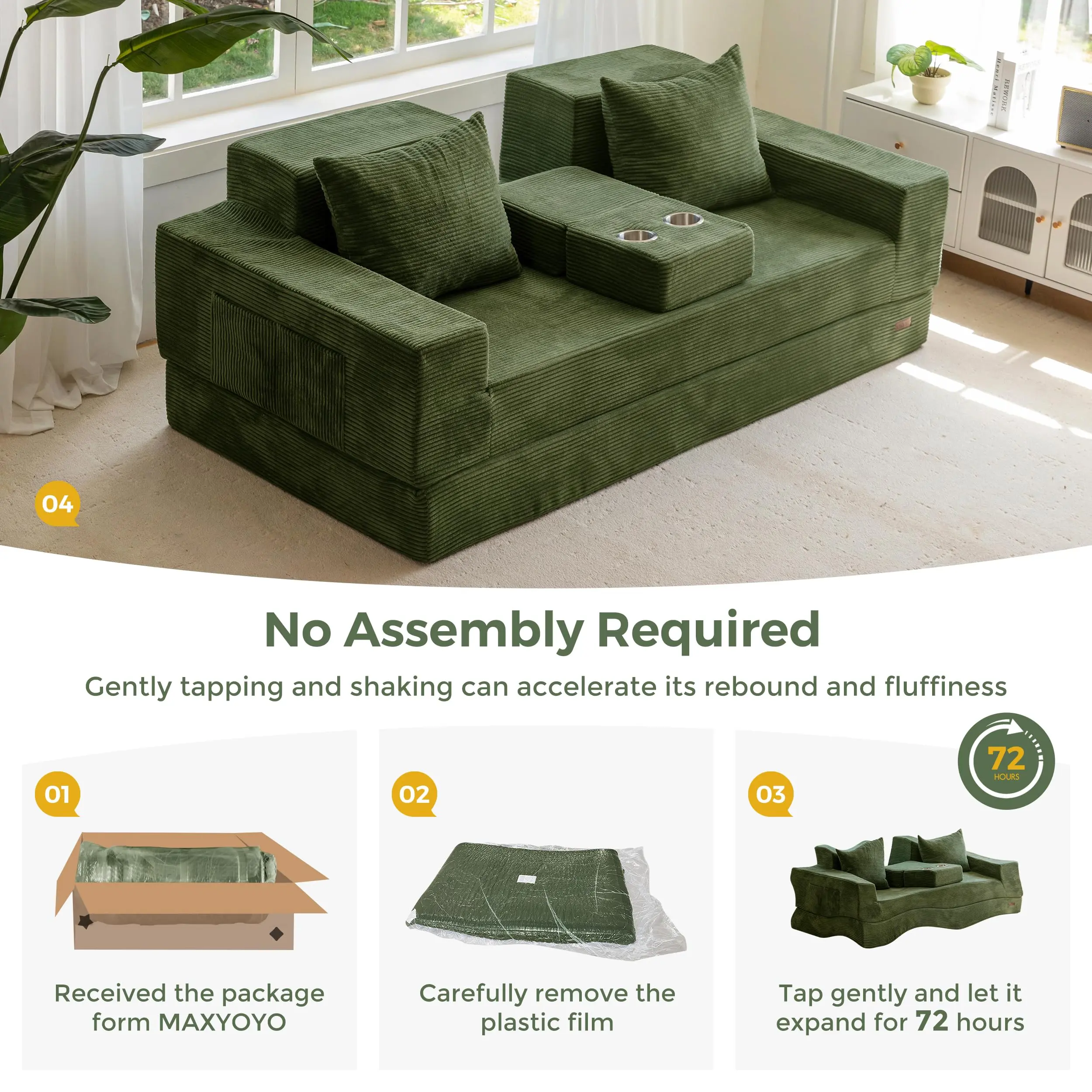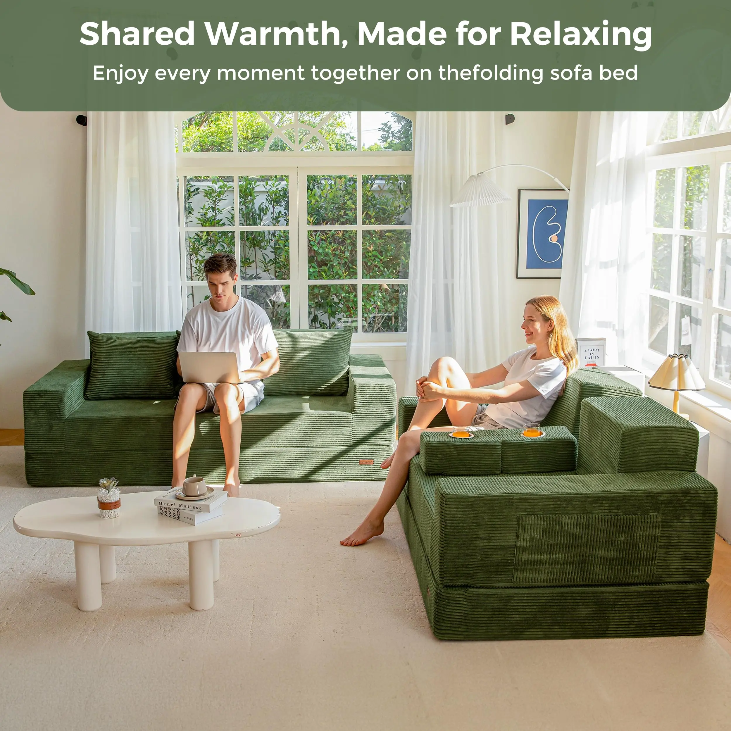·4 in 1 Foldable Sofa Bed: This versatile sofa couch easily folds out into a floor sofa bed, giving you flexible seating and sleeping options. It can serve as sofa, sofa with cup holders, sofa bed, and sofa bed with cup holders. Perfect for small spaces, apartments, dorms, or guest rooms.