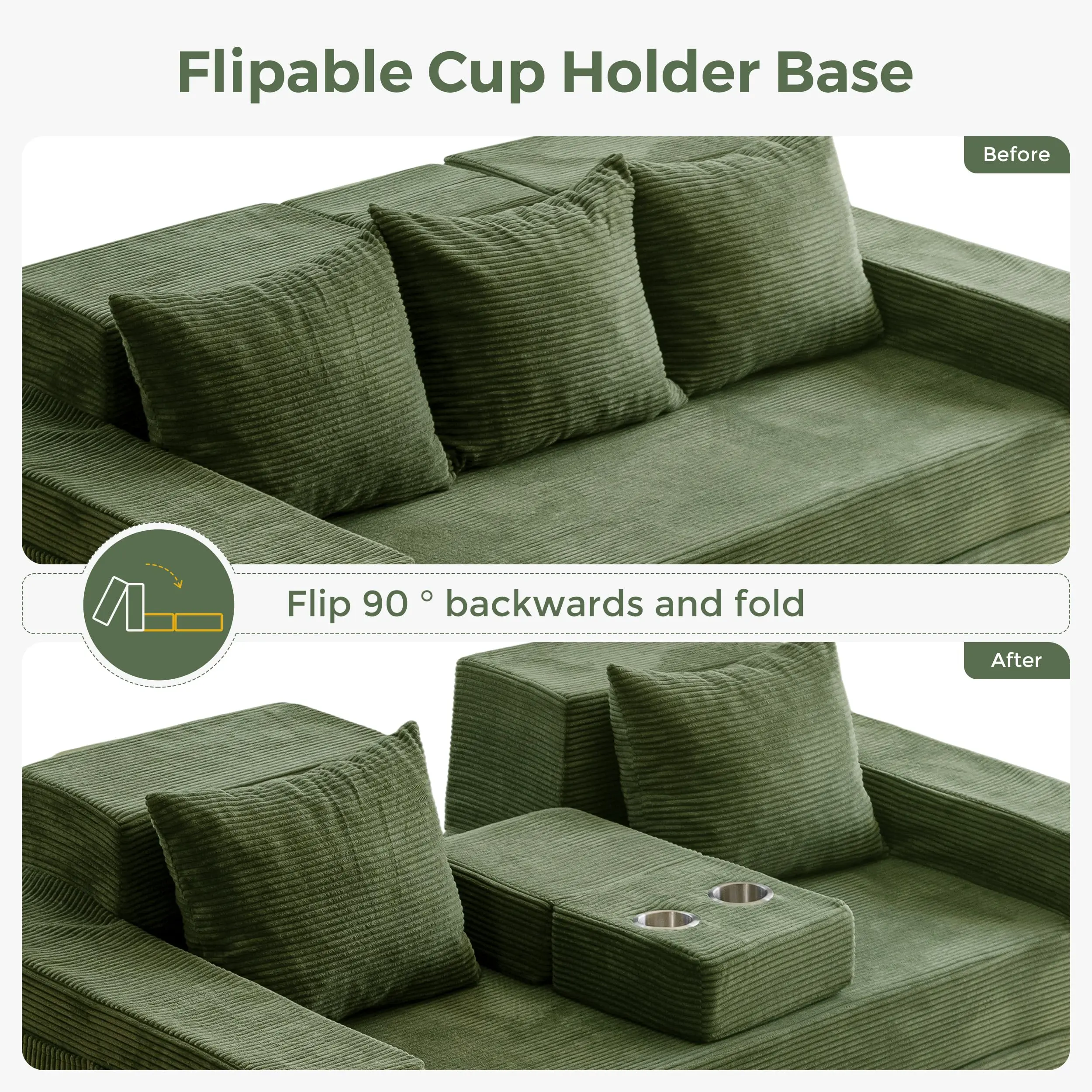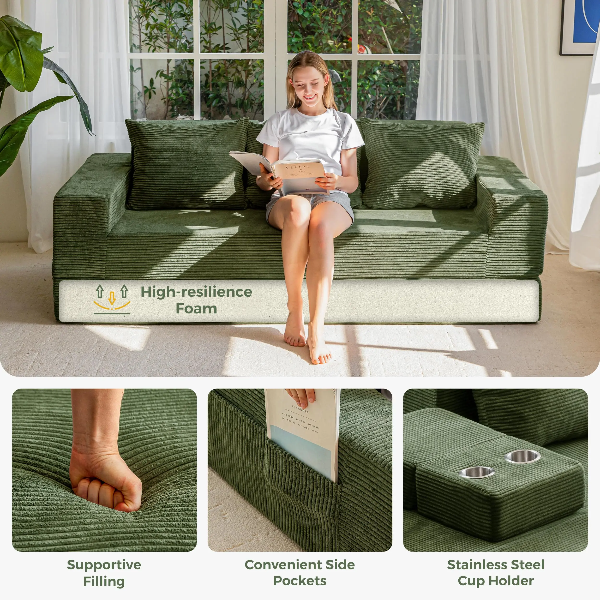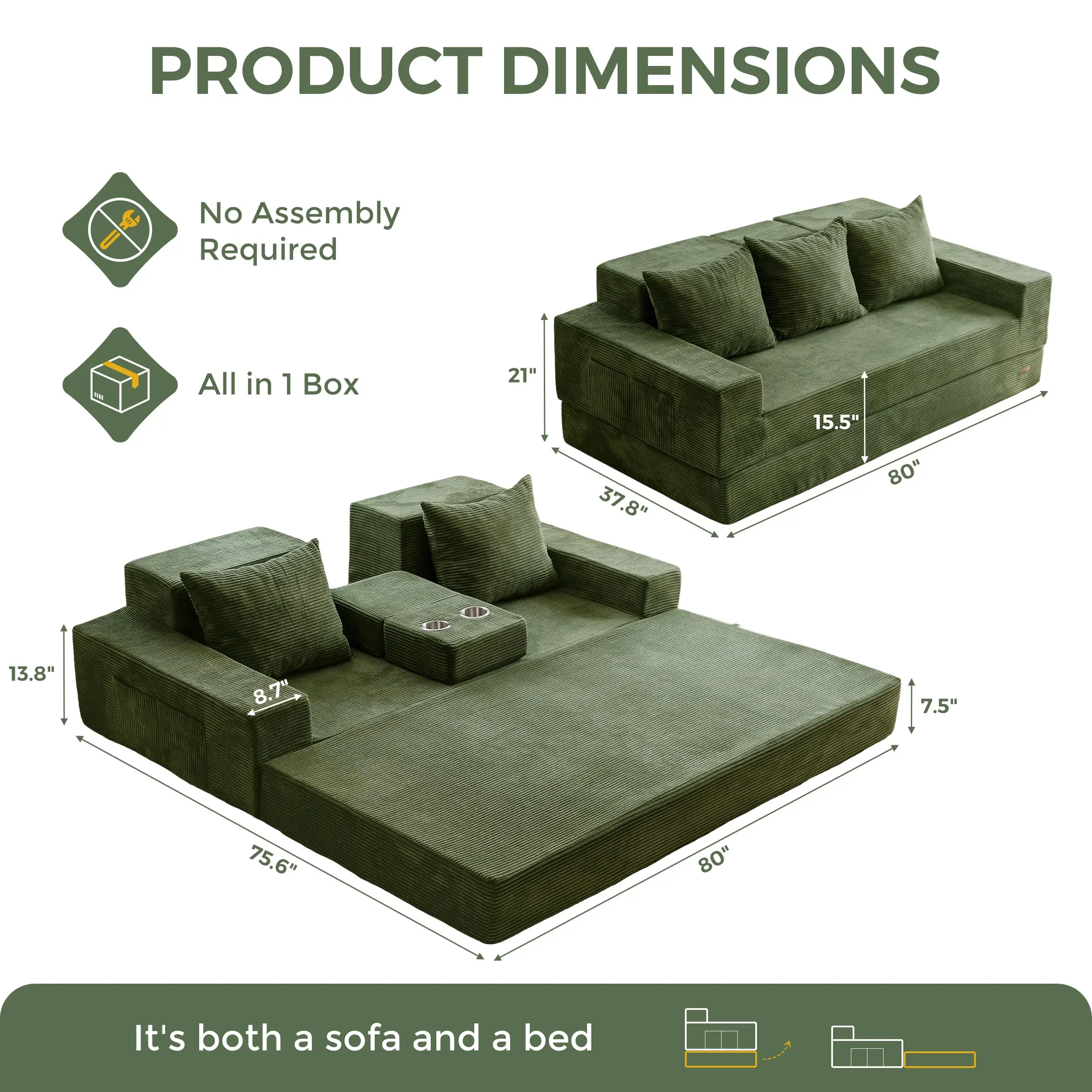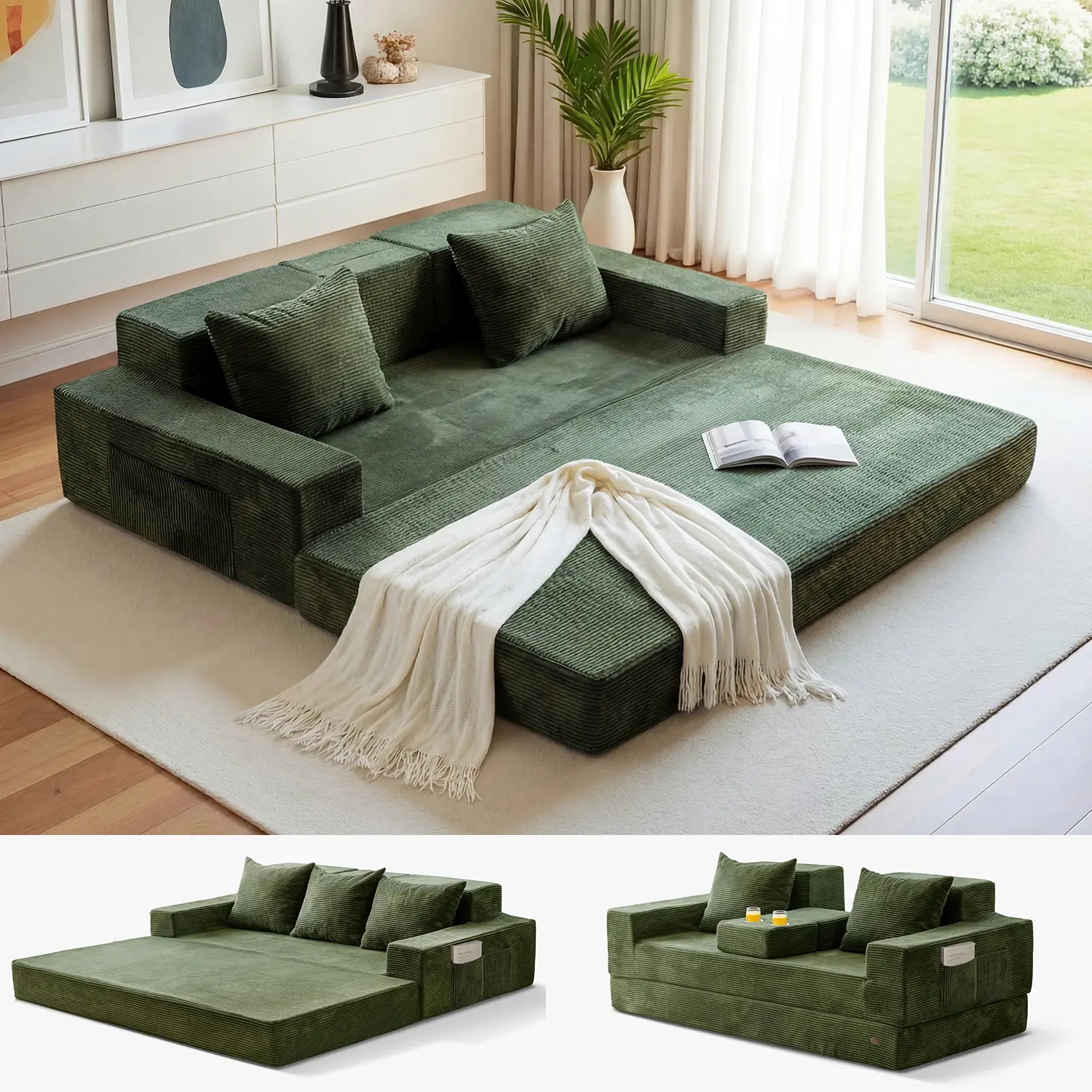 ·4 in 1 Foldable Sofa Bed: This versatile sofa couch easily folds out into a floor sofa bed, giving you flexible seating and sleeping options. It can serve as sofa, sofa with cup holders, sofa bed, and sofa bed with cup holders. Perfect for small spaces, apartments, dorms, or guest rooms.