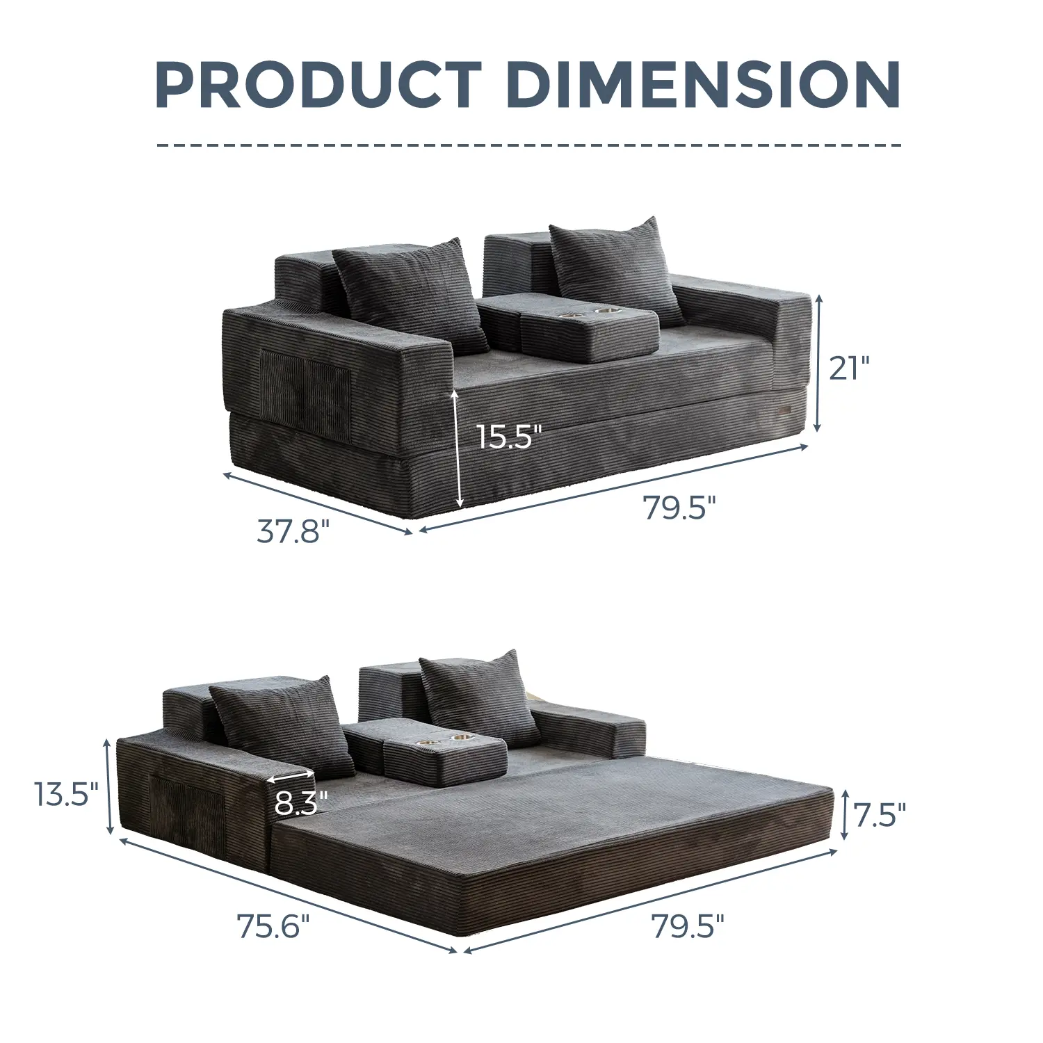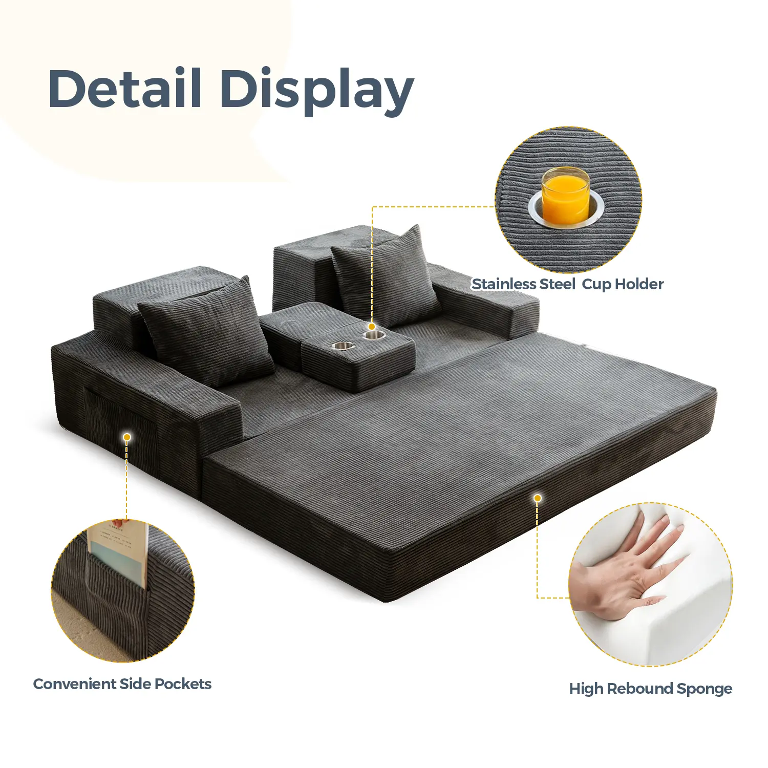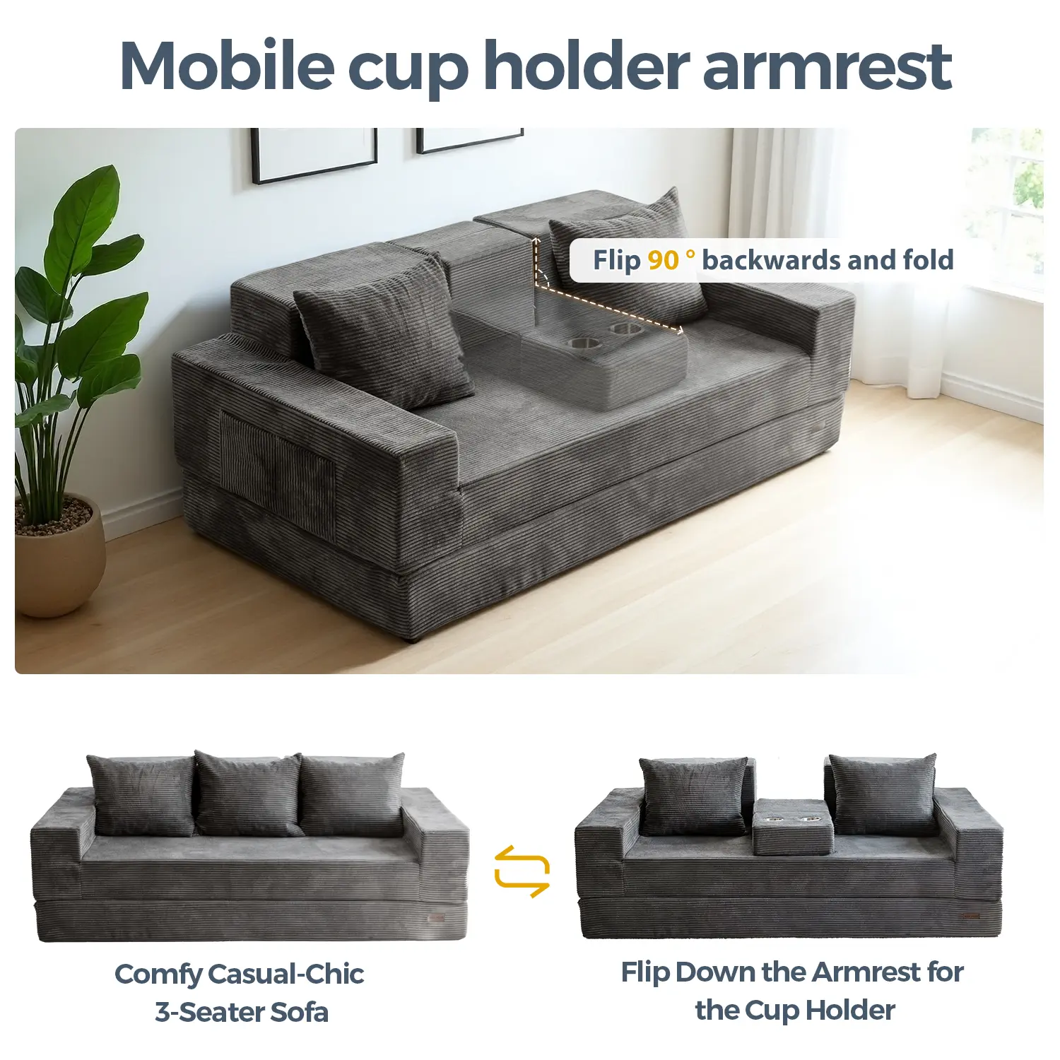 Easily switch between sofa, sofa bed, cup holder mode & lounge. Perfect for small spaces or guest rooms.