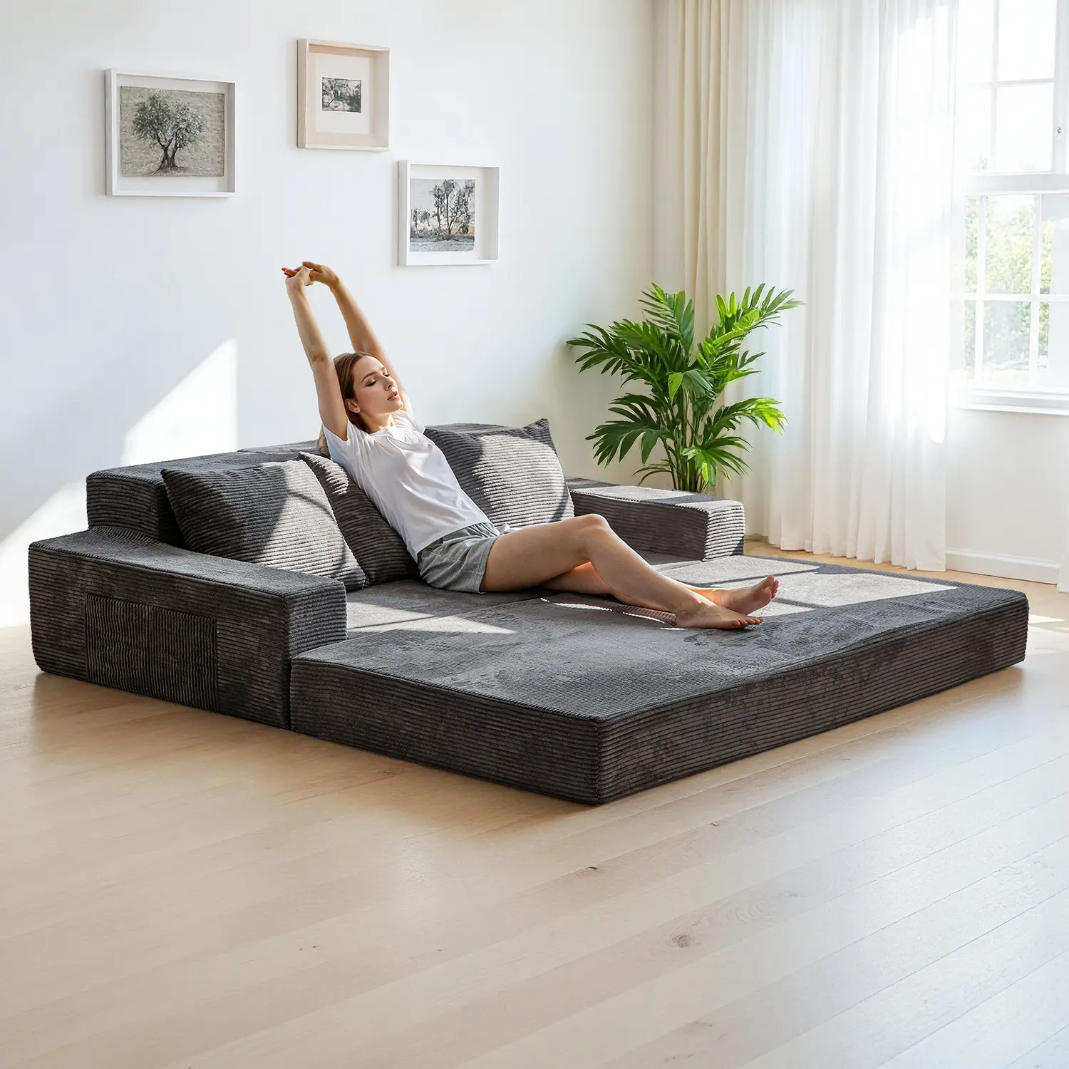 4-in-1 Convertible Floor Sofa