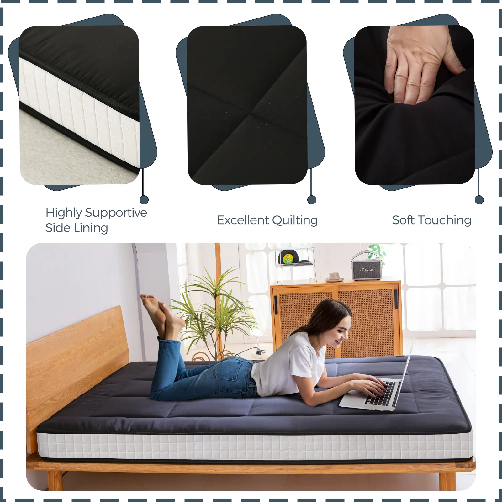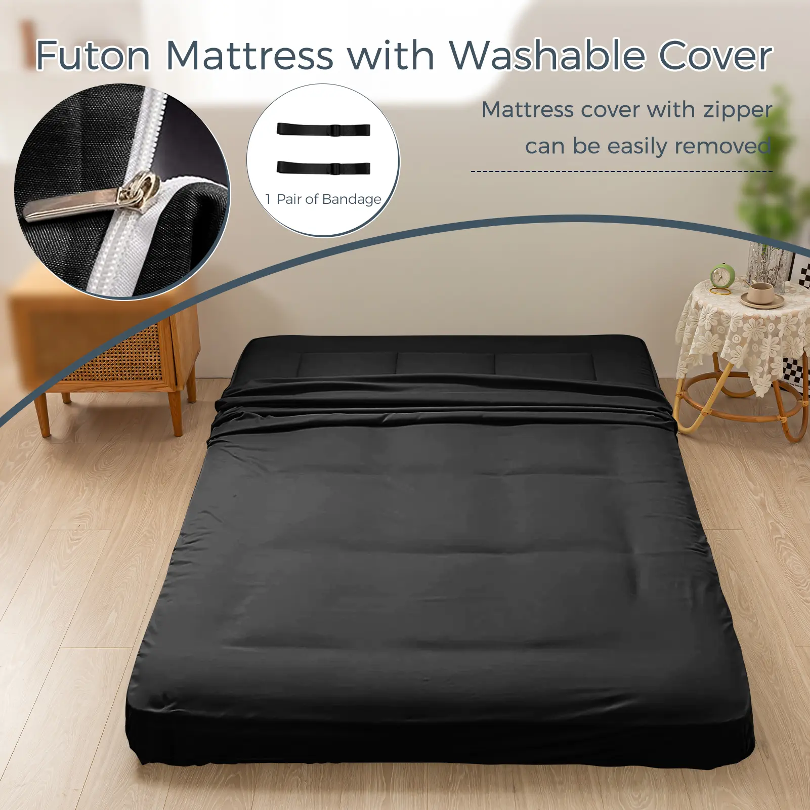 Experience superior cushioning and support with our extra-thick, high-density foam. This mattress provides exceptional comfort for sleeping or lounging, preventing any hard floor feel.