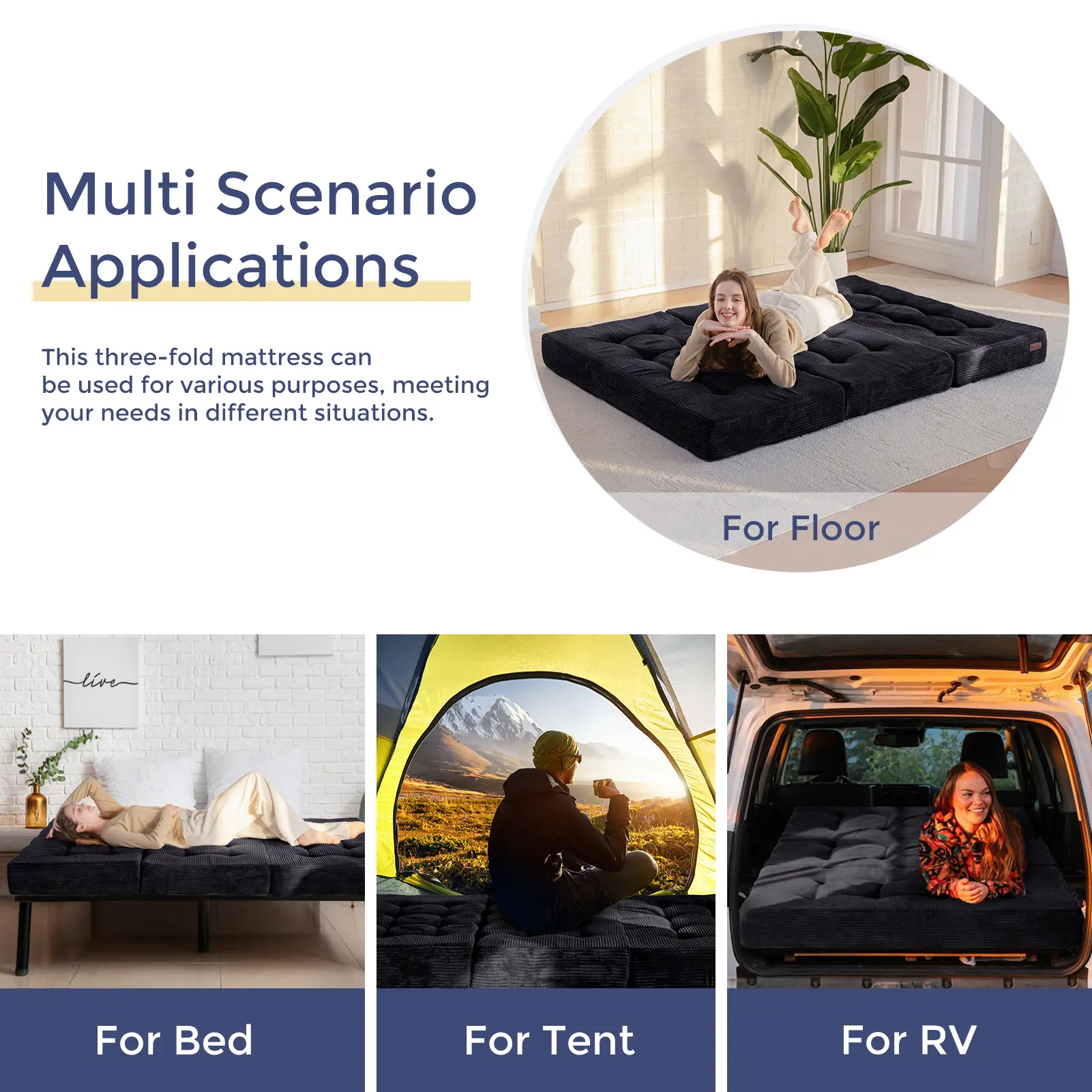 MAXYOYO 6 Inch Tri-Fold Mattress, Twin/FullQueen Size Portable Floor Bed with Corded Fabric. Firm Foam for Guest Room, Dorms & Camping