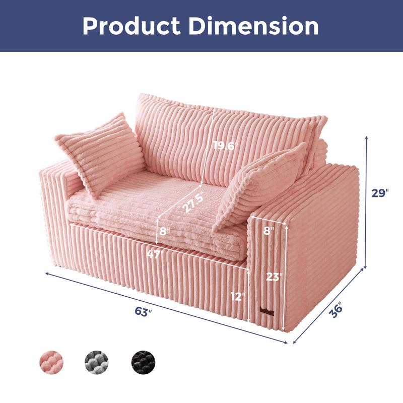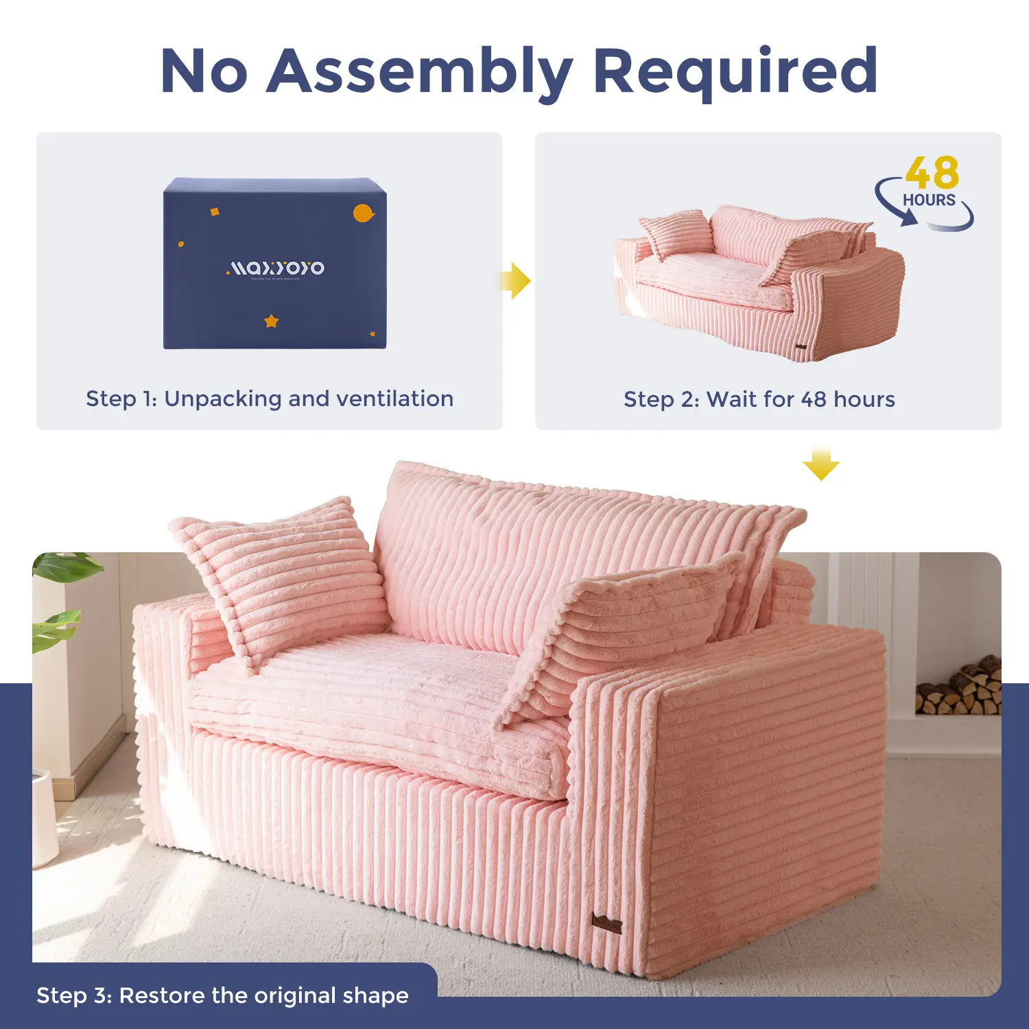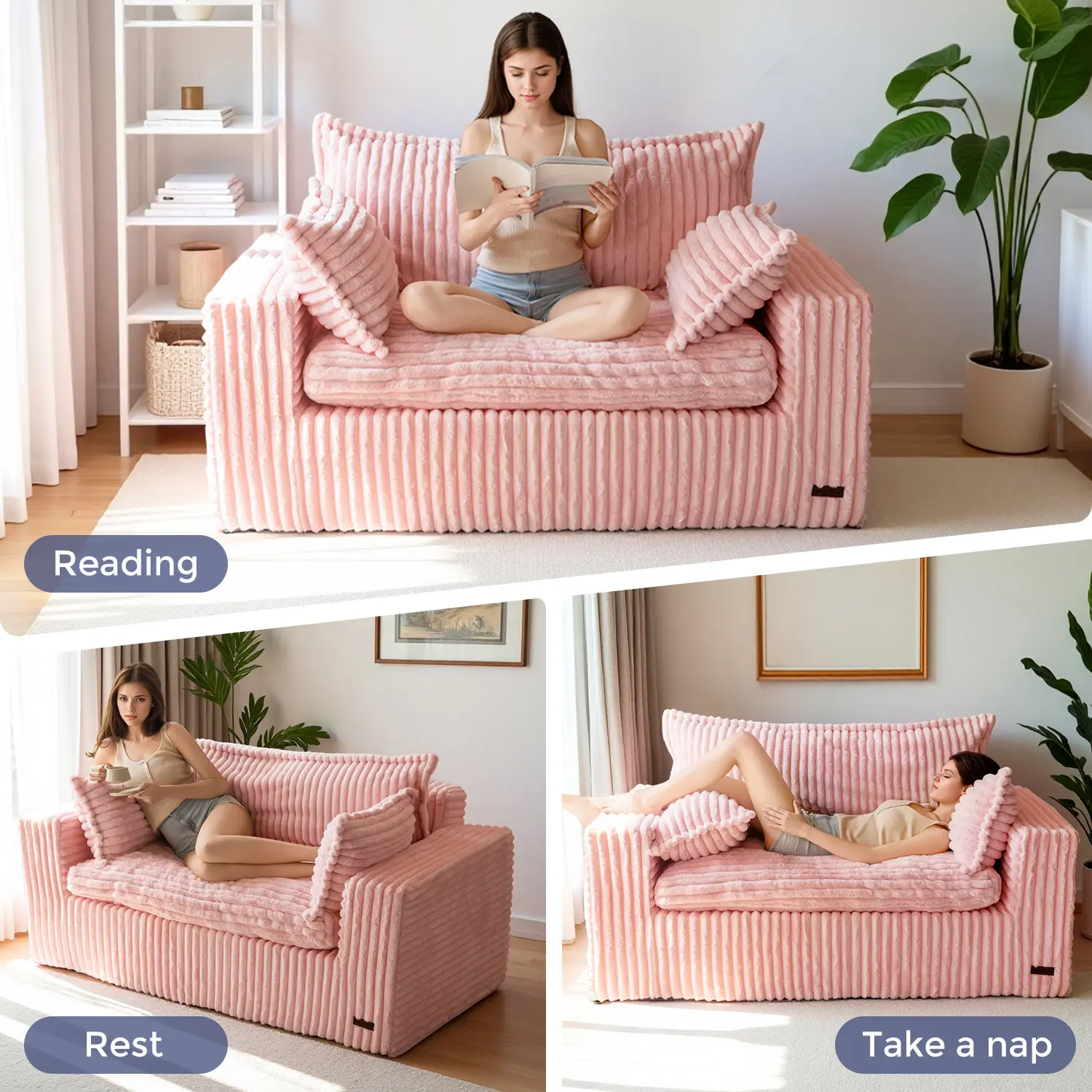 ·Elastic Comfort Support: This boneless sofa is filled with high-density foam and shredded foam, combining elastic support structure and soft comfort. Two pillows can provide additional waist or neck support, giving you a fully customizable leisure experience