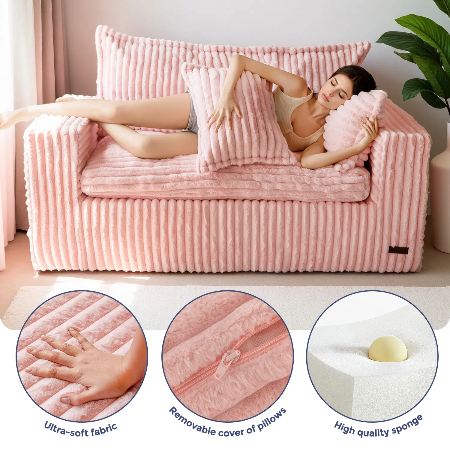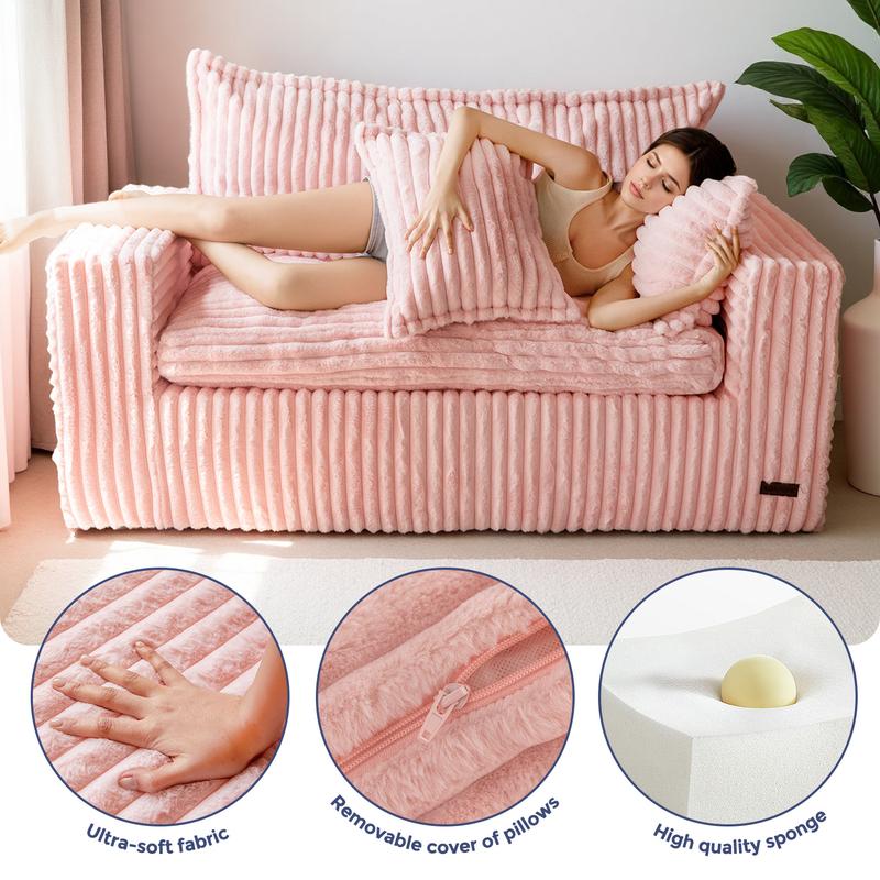·Premium Faux Fur: Wrapped in high-quality, heavy-craft faux fur, this sofa couch in a box feels ultra-soft and warm against the skin. The plush texture brings elegance and comfort to any room, whether modern, minimalist, or cozy