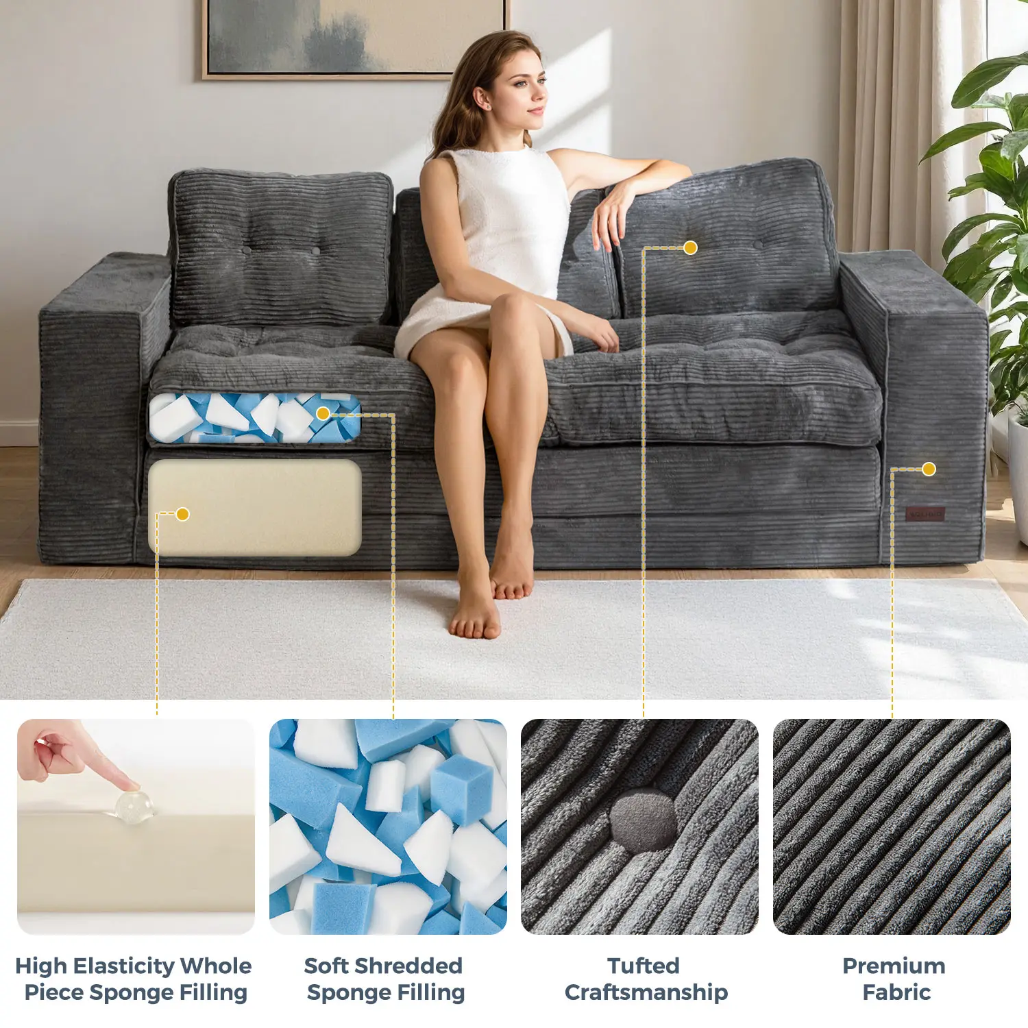 ·Corded Fabric and Tufted Craft: Corded fabric has a soft and delicate touch, with good breathability and wear resistance. The unique tufted process not only enhances the firmness of the fabric, but also adds a touch of retro and fashionable feeling to the overall design