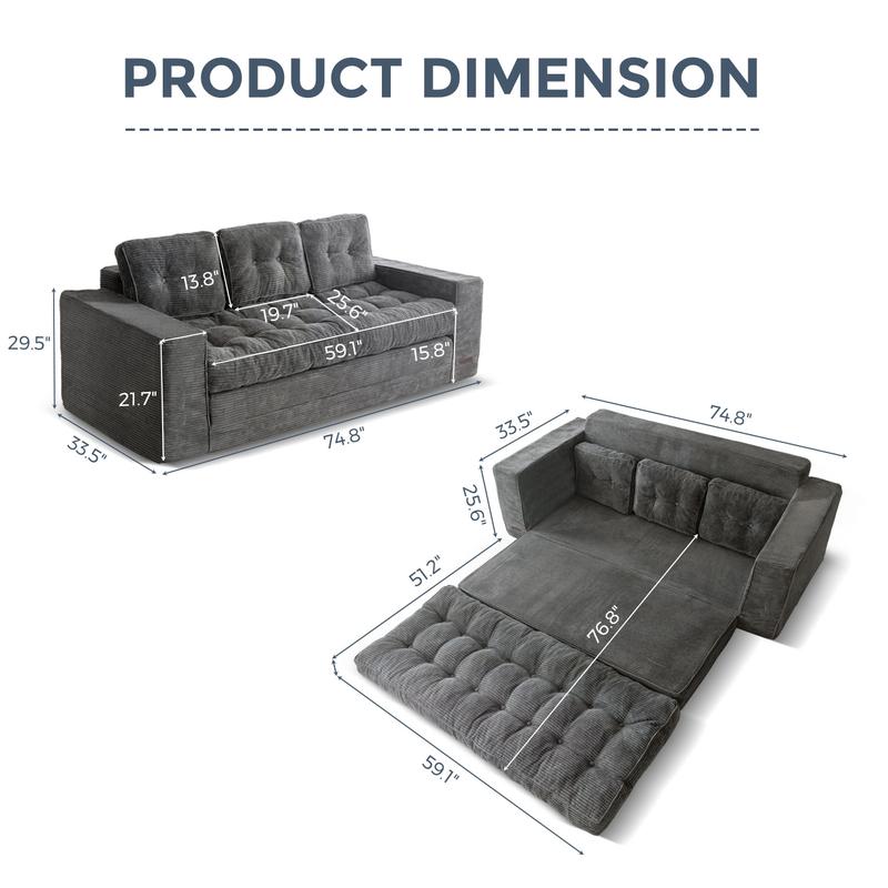 ·Generous Dimensions: Using high-density support foam filling, it can provide excellent support and comfort in both forms,making it an ideal choice for both lounging and sleeping
