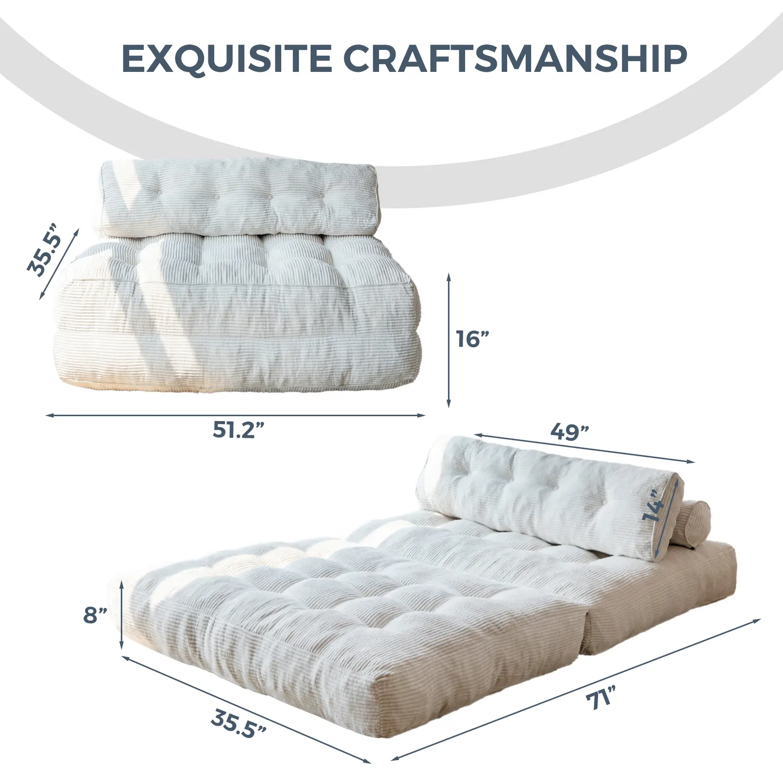 The Headrest and Lumbar Pillow set is designed to provide superior comfort and support, offering a luxurious experience whether you're sitting or reclining. The headrest is designed with a strap and buckle, ensuring a secure and stable attachment to the folding sofa, effectively preventing any unwanted shifting or displacement. The lumbar pillow supports the natural curve of your lower back, alleviating discomfort during extended periods of sitting.