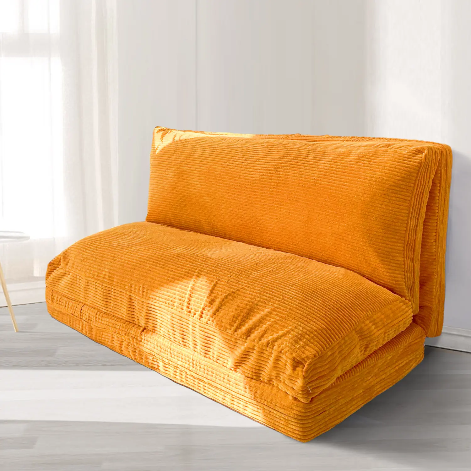 Add a pop of modern style! Upholstered in soft, textured orange corduroy, this sofa bed is both stylish and built to last. The durable fabric resists wear and tear, making it a practical and attractive addition to any room's decor.