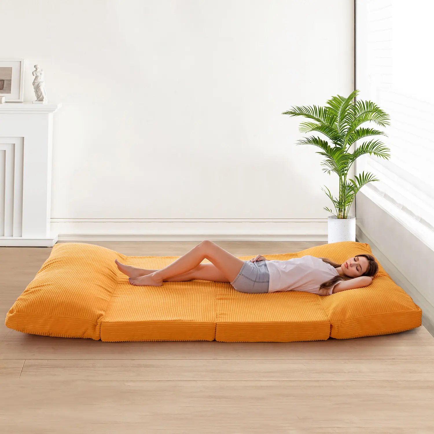 Instantly transform your space! This versatile furniture piece easily folds into a comfortable, supportive sofa for daily lounging. When you need extra sleeping space, simply unfold it into a spacious floor bed, perfect for hosting guests or relaxing in your living area.