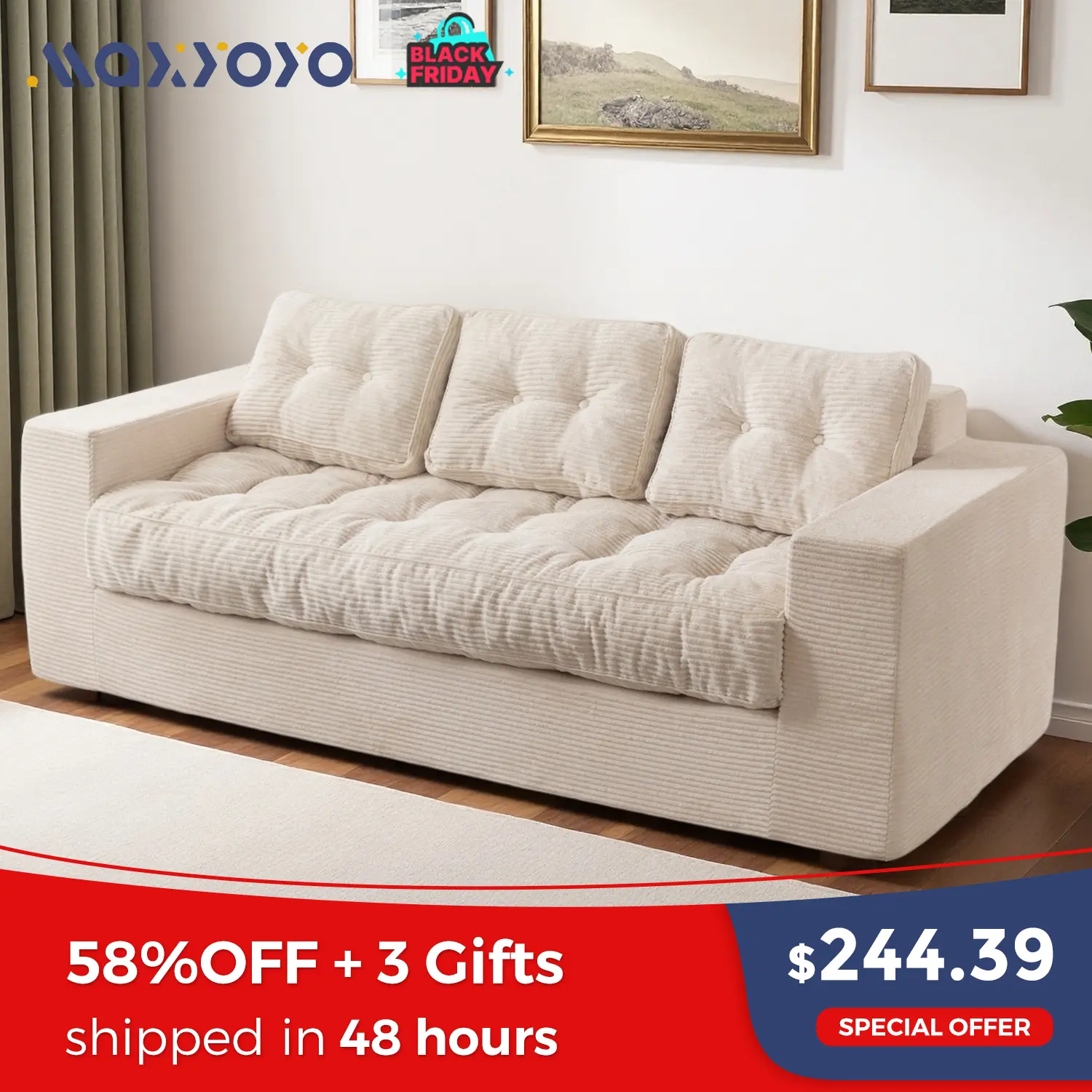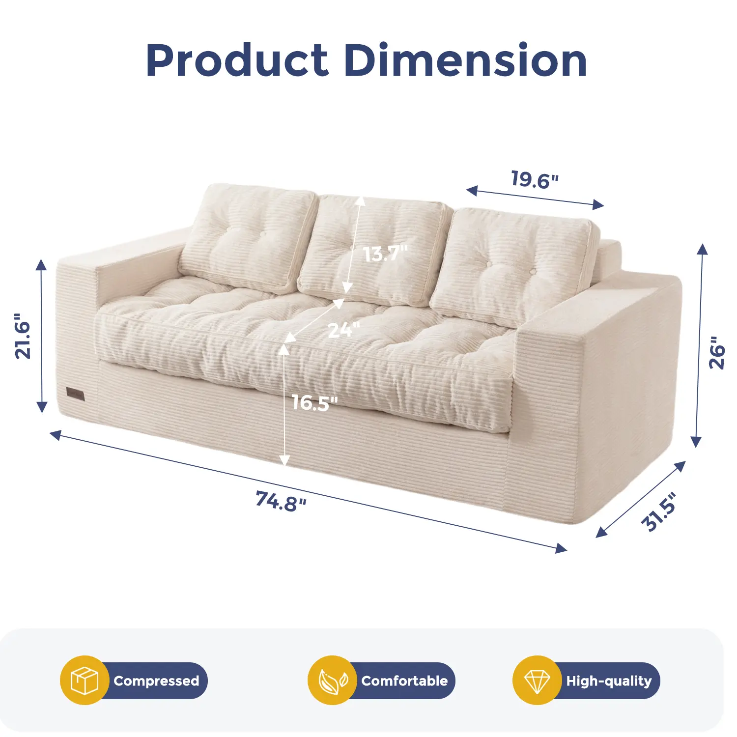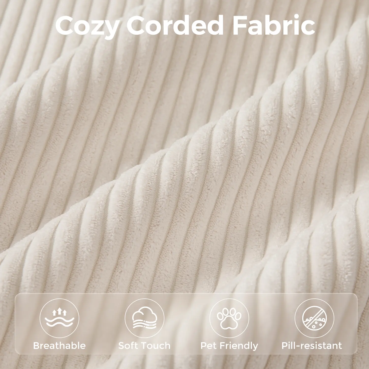 Textured Corded Fabric: Wrapped in premium corduroy, this sofa couch in a box delivers a soft, skin-friendly feel with stylish ribbed texture. Durable and breathable, it's made to stay plush and beautiful through everyday lounging
