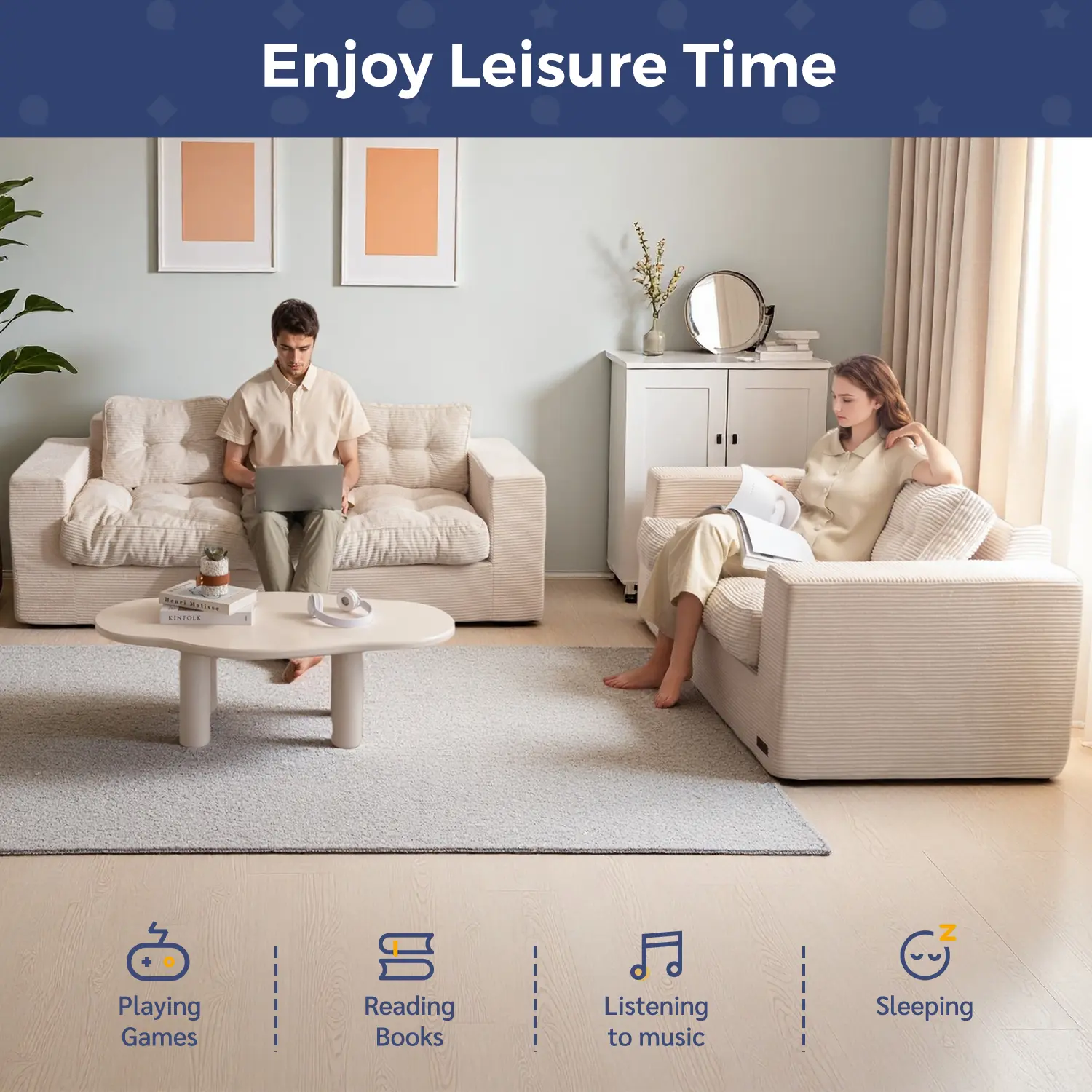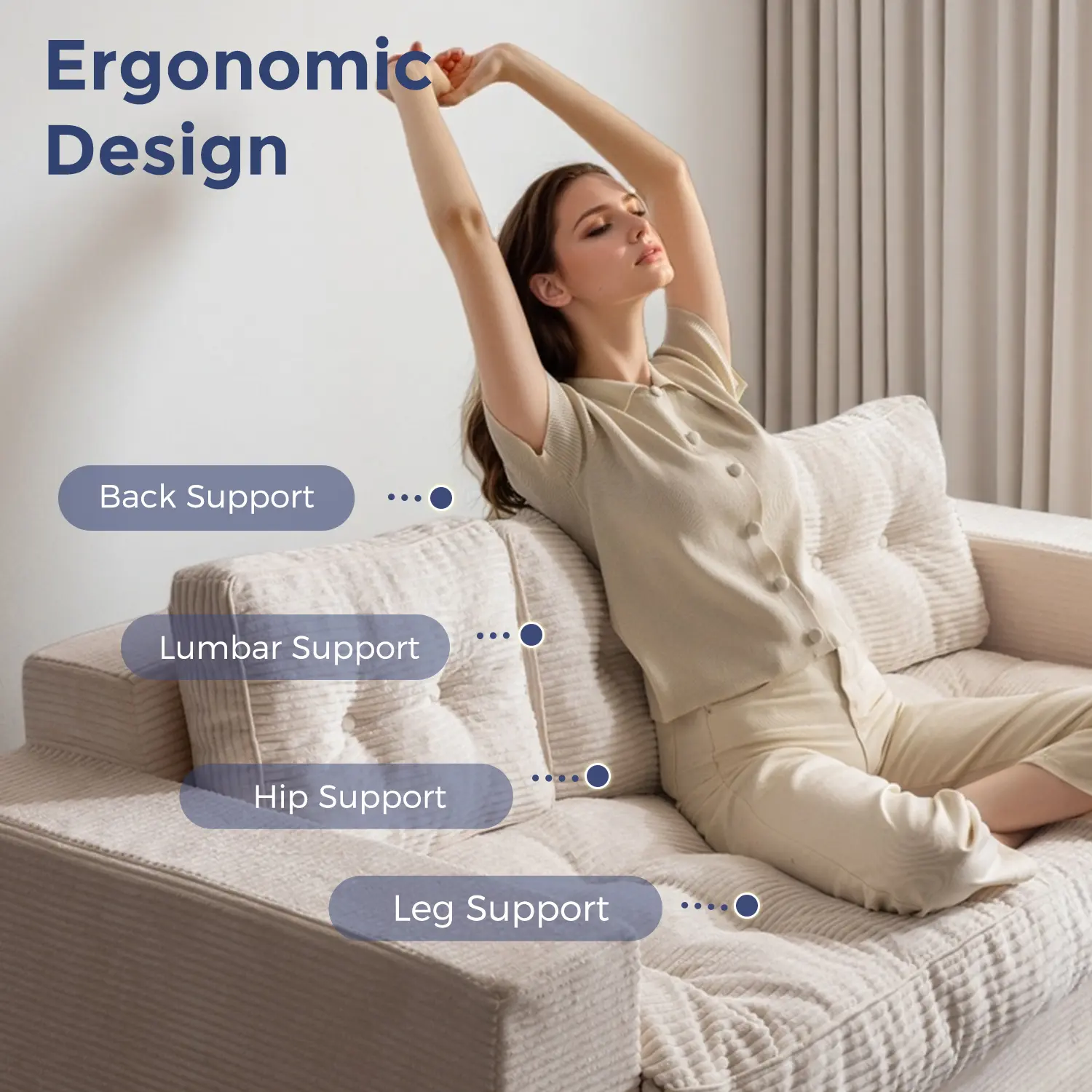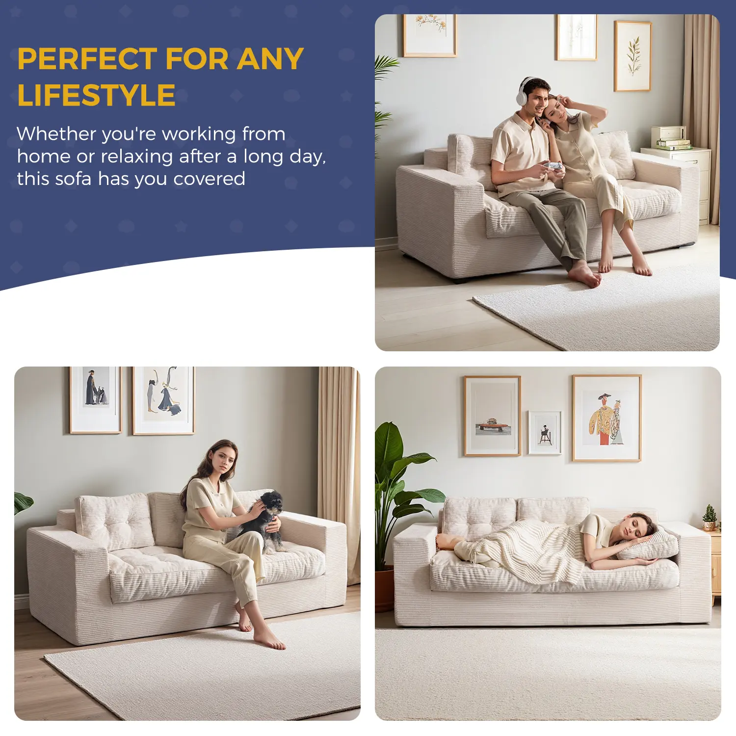 Textured Corded Fabric: Wrapped in premium corduroy, this sofa couch in a box delivers a soft, skin-friendly feel with stylish ribbed texture. Durable and breathable, it's made to stay plush and beautiful through everyday lounging