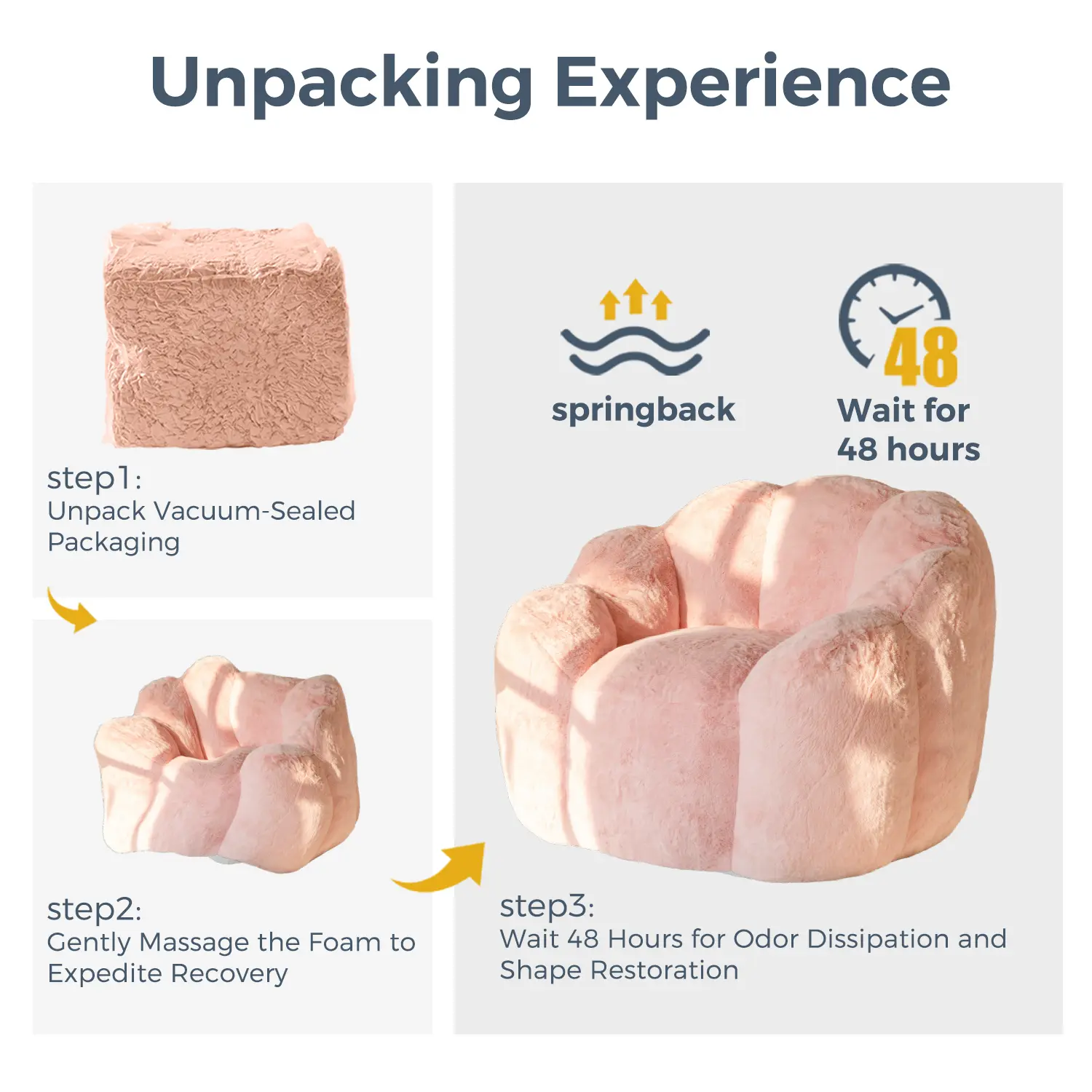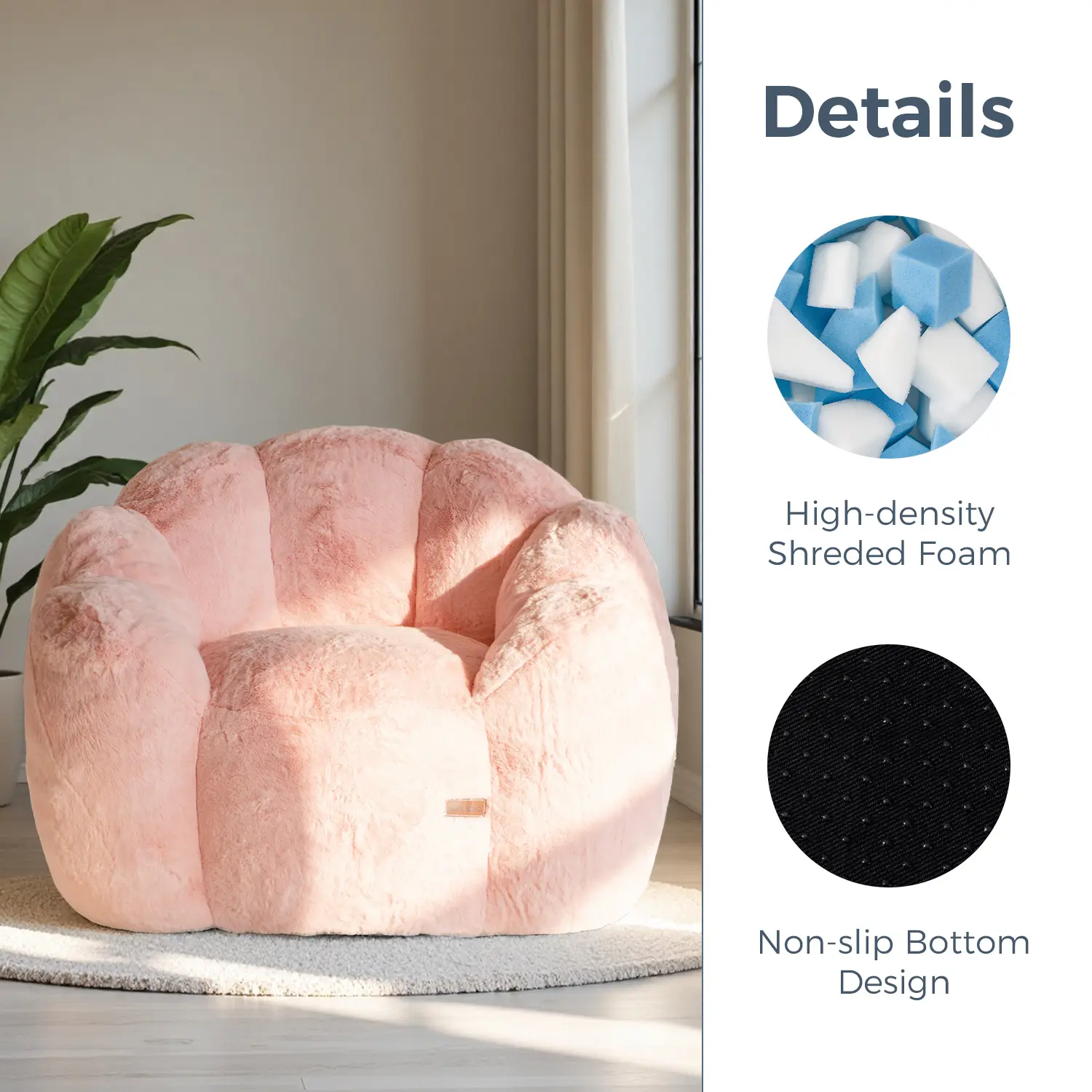 MAXYOYO Floral Bean Bag Chair - Ultra Soft Faux Fur Floral Shaped Bean Bag Sofa with Petal Back, Reading Chair Stuffed Lazy Sofa for Living Room Bedroom