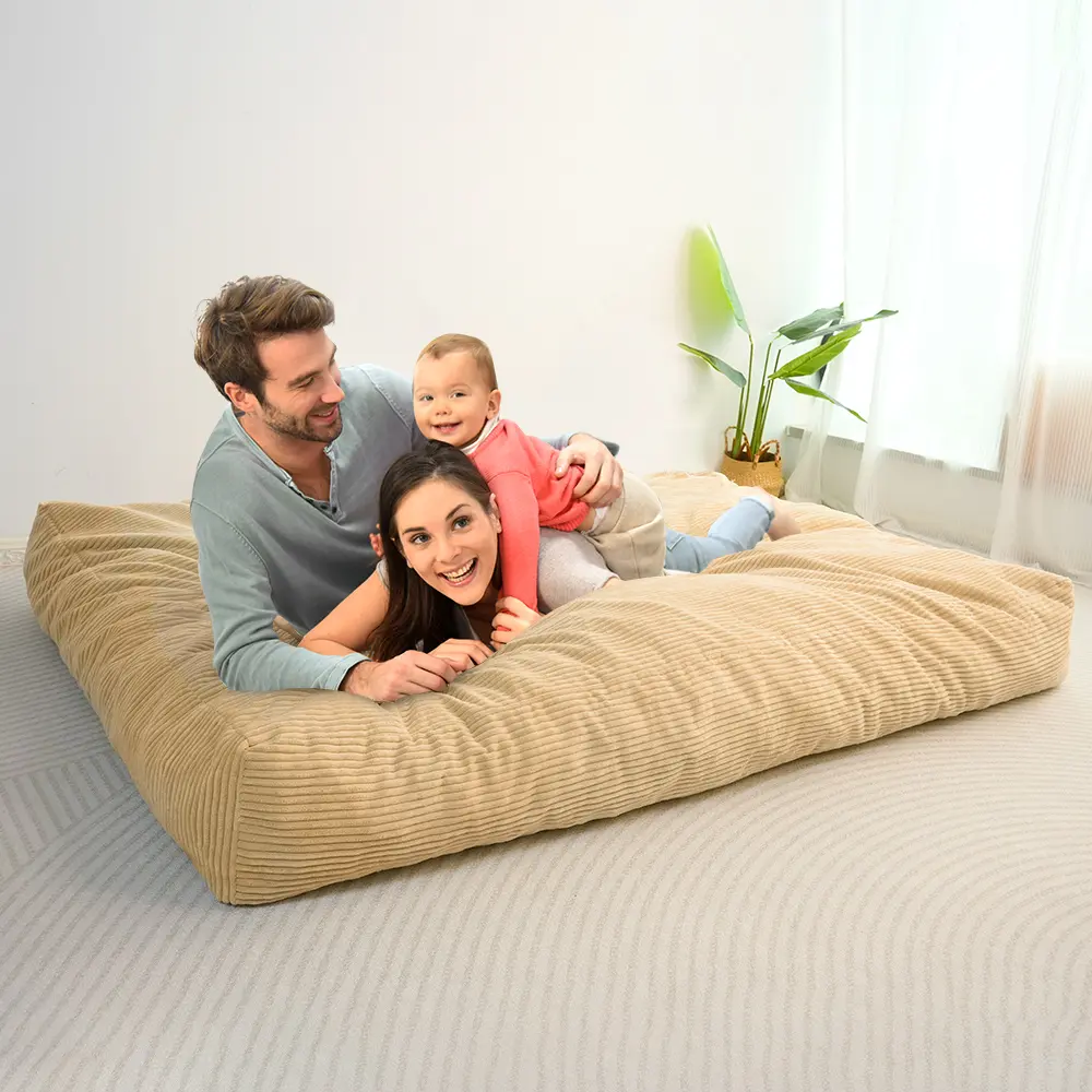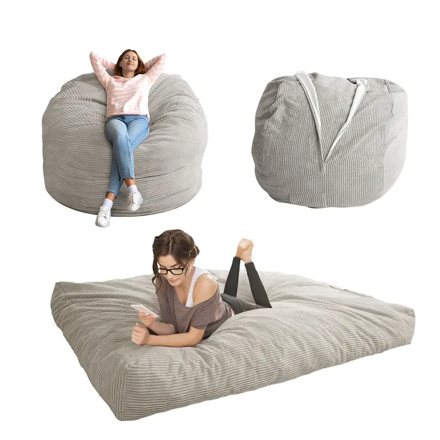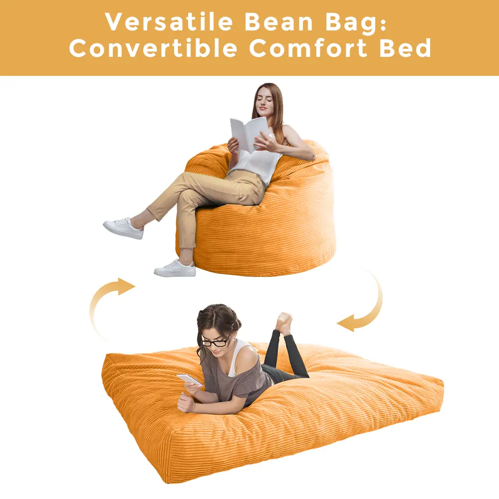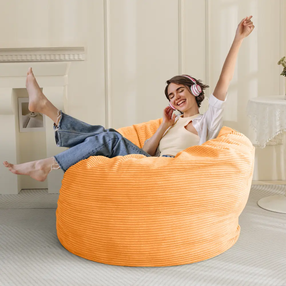 The outer cover of the bean bag chair is made of breathable premium corduroy fabric, which has a soft and skin-friendly texture. It's also machine washable, allowing for easy cleaning. The bean cover features a long zipper that runs the length of the bean bag, making it simple to take on and off. In case of spills or stains, the cover can be easily washed to restore it to a like-new condition.