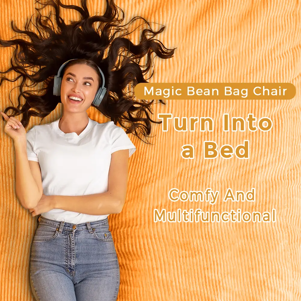 Simply remove the cover and flip the inner cushion to turn it into a bed. Fold and slide into cover to convert back to a chair. The bean bag maintains a comfortable and flat shape, ensuring a good night's sleep without waking up with neck pain.
