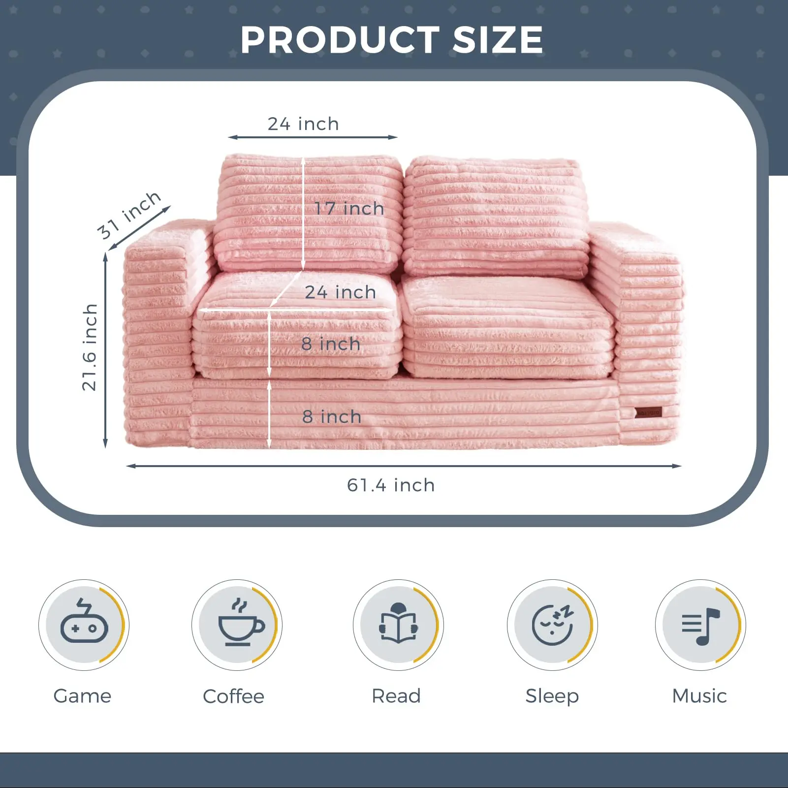 A cozy 62" wide loveseat for watching movies, gaming, or relaxing with a friend (or pet!). Perfect for living rooms, bedrooms, dorms & more. Size: 62" width x 31" depth x 21.6"