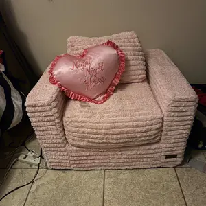Filled with supportive base foam + shredded foam in pillows. Soft yet structured, holds its shape beautifully.