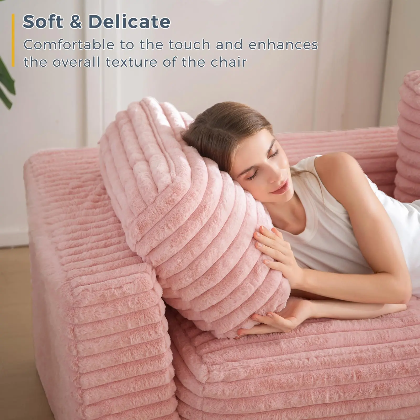 Ultra-soft plush faux fur with a modern wide-stripe pattern. Removable & machine washable cover + anti-slip bottom for added stability.