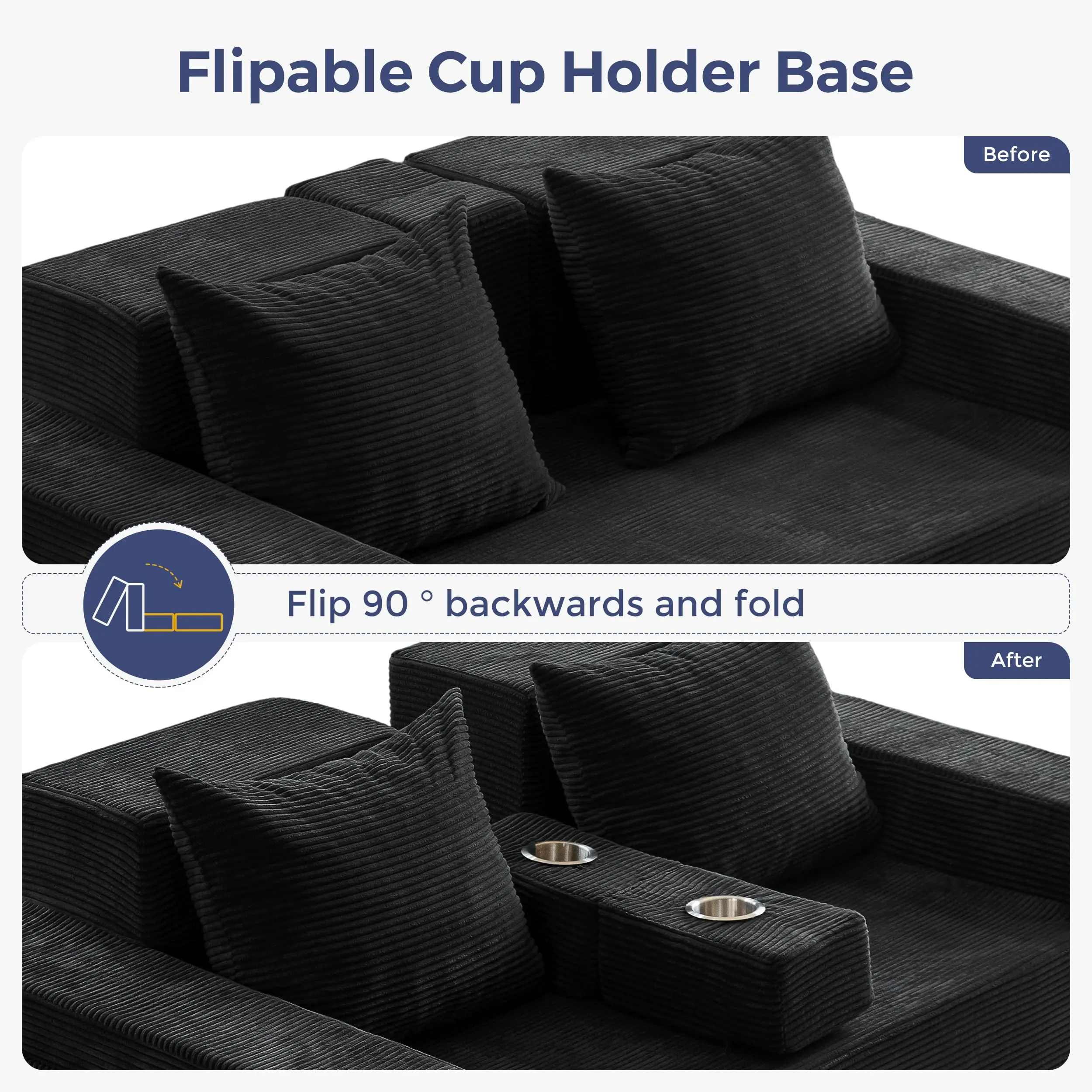 ·Armrests with Cup Holders & Storage Pockets: Designed with wide armrests that include cup holders for your drinks and side pockets for remotes, magazines, or small essentials—keeping everything you need within reach