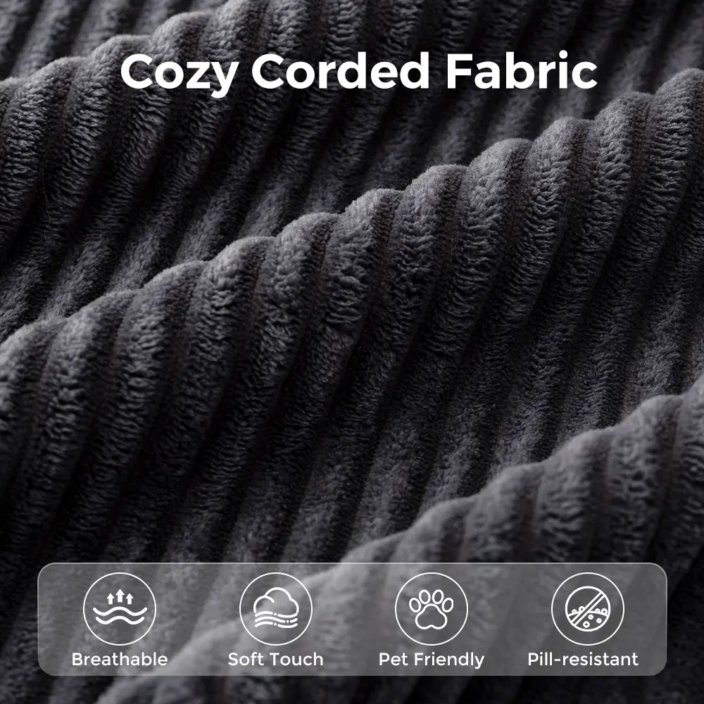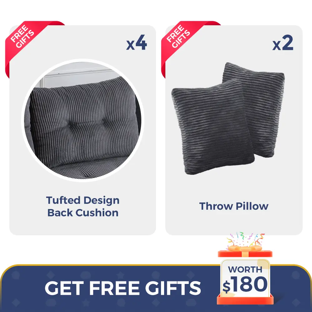 Soft Corded Fabric: Upholstered in premium corded fabric, the sofa surface is soft, breathable and skin-friendly. It brings serene warmth, offering soft comfort. Its ribbed texture adds depth and modern style, making it a cozy focal point in any living room or lounge space