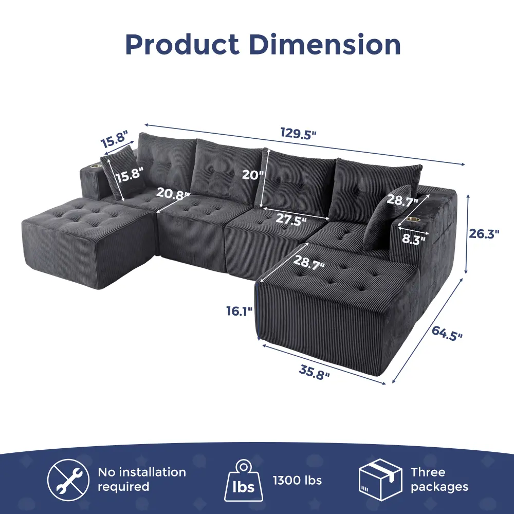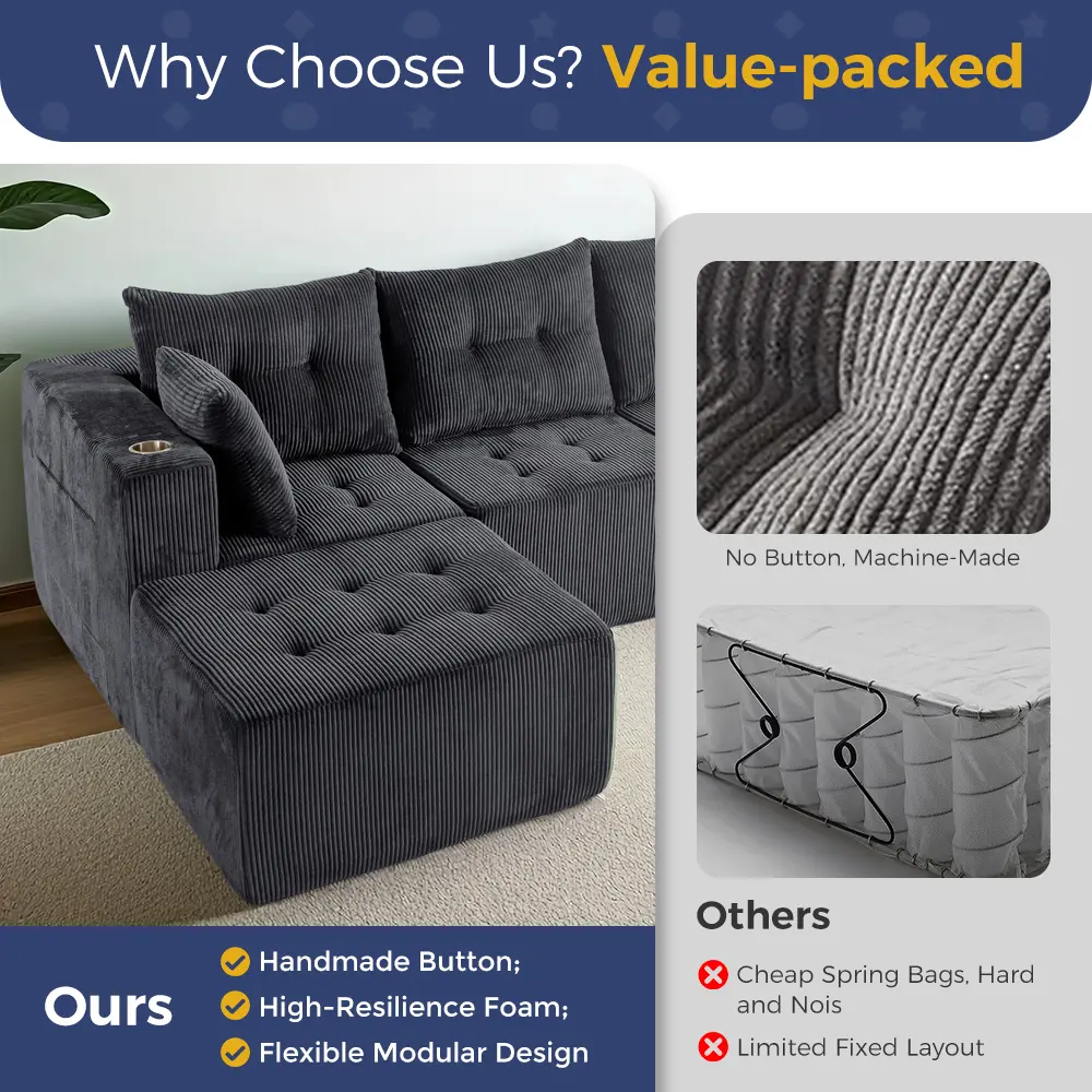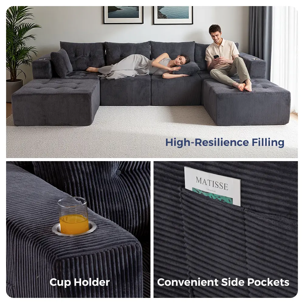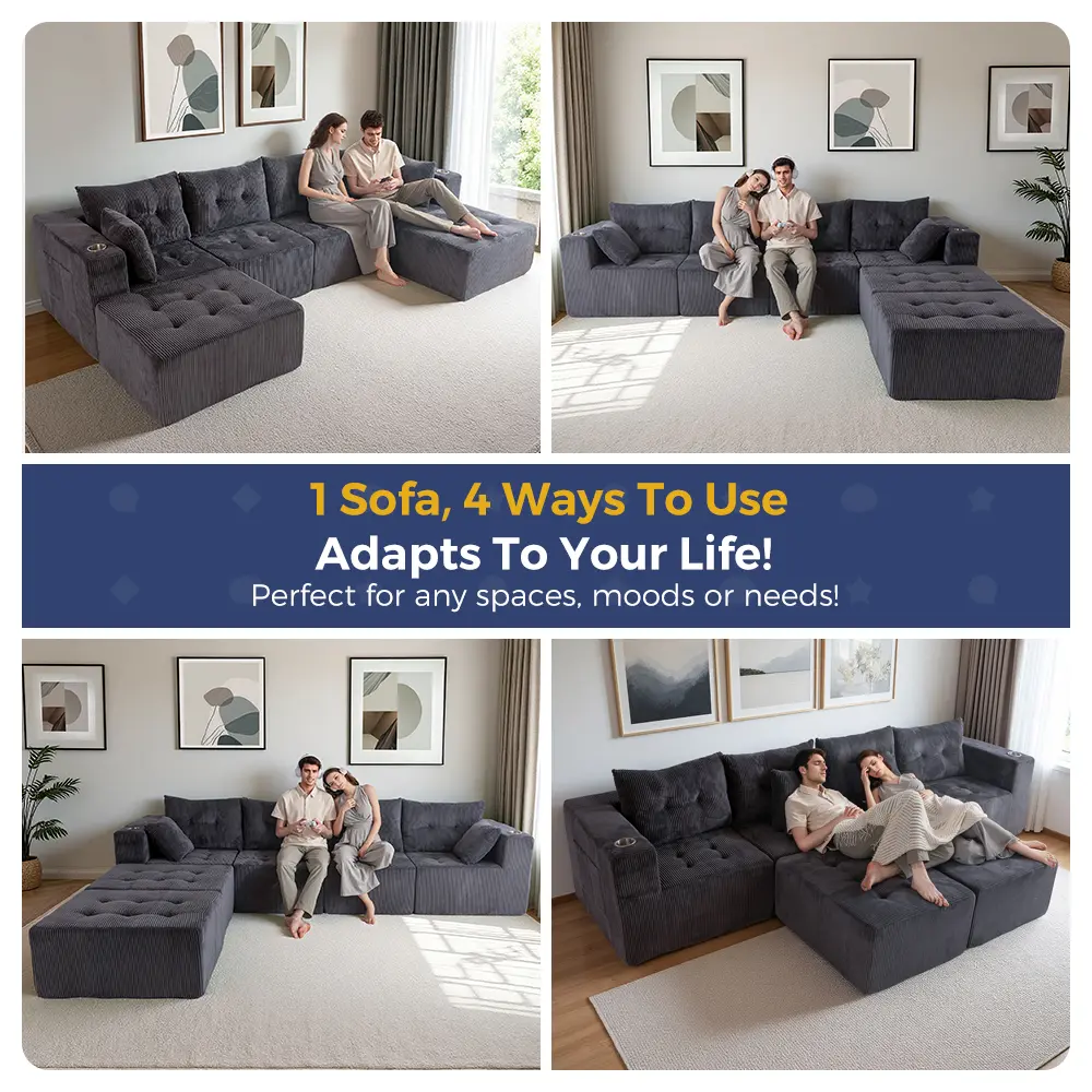 U Shaped Modular Sofa Couch: This sectional sofa couch allows you to build your own layout. Each module is individually moulded and can be split or combined at will, making it easy to cope with changes in space. Whether it's a compact flat or an open-plan living room, the layout can be adapted to utilise the space, which is convenient for you to read books, play games, watch TV and other leisure activities