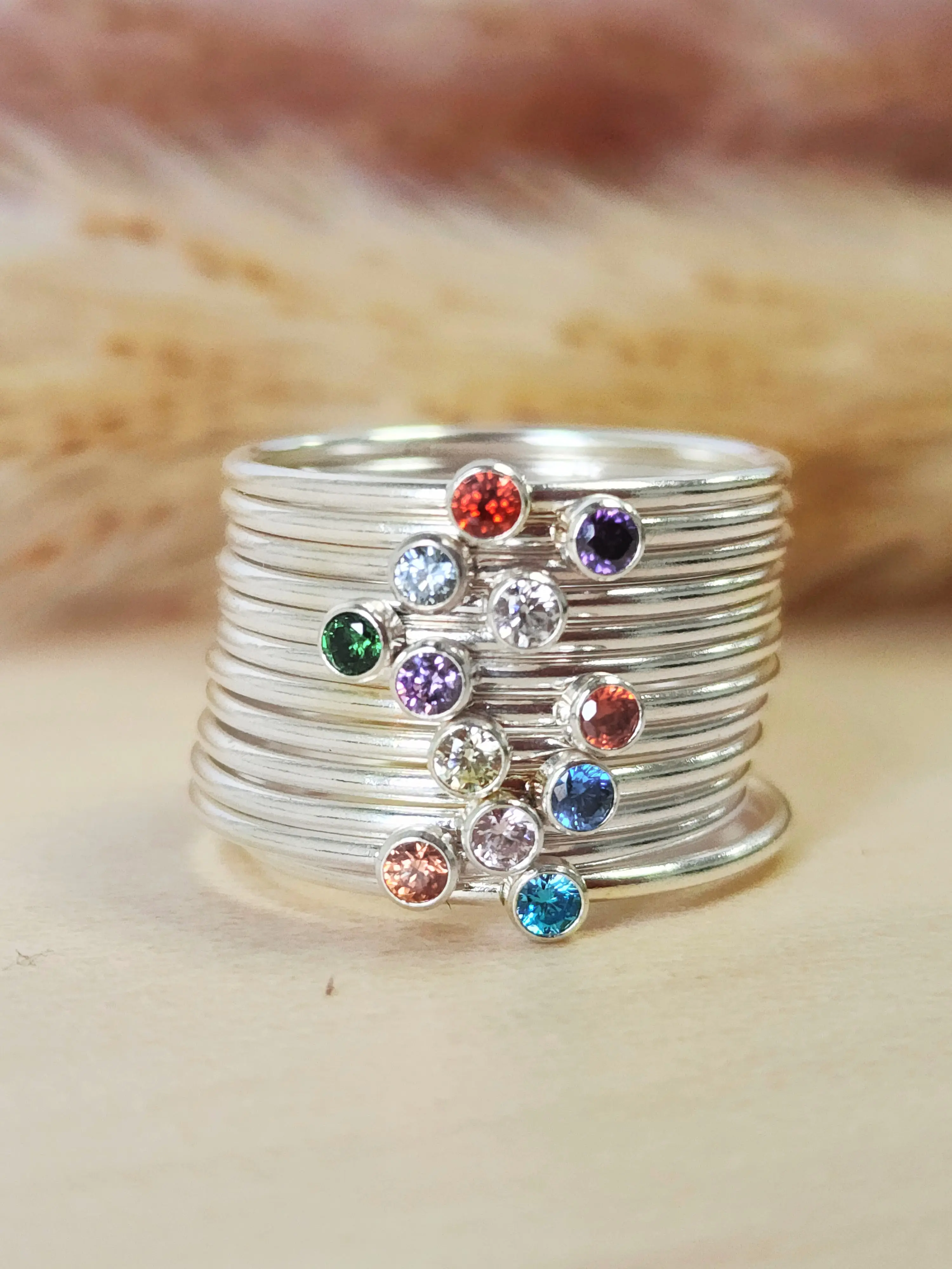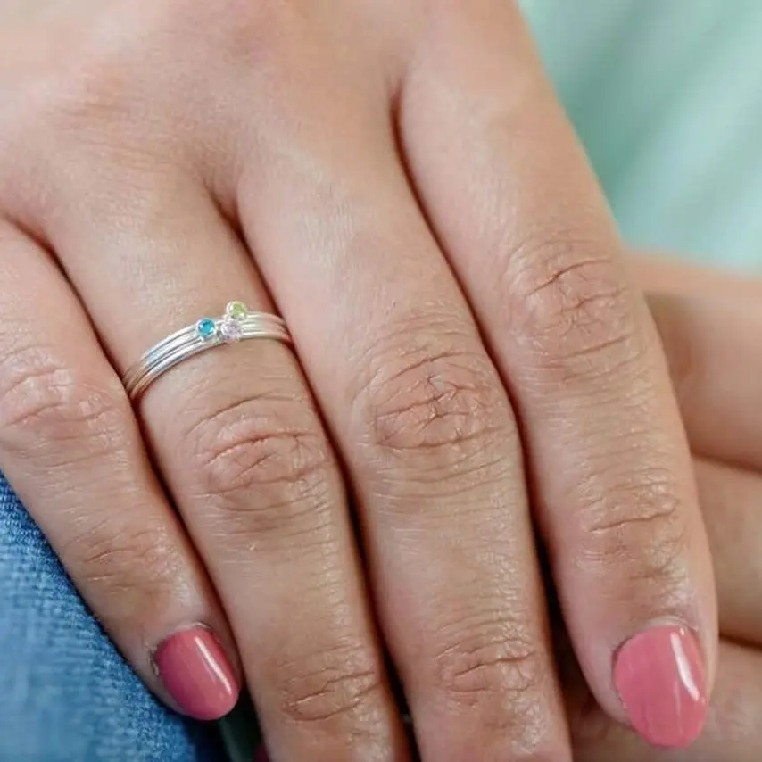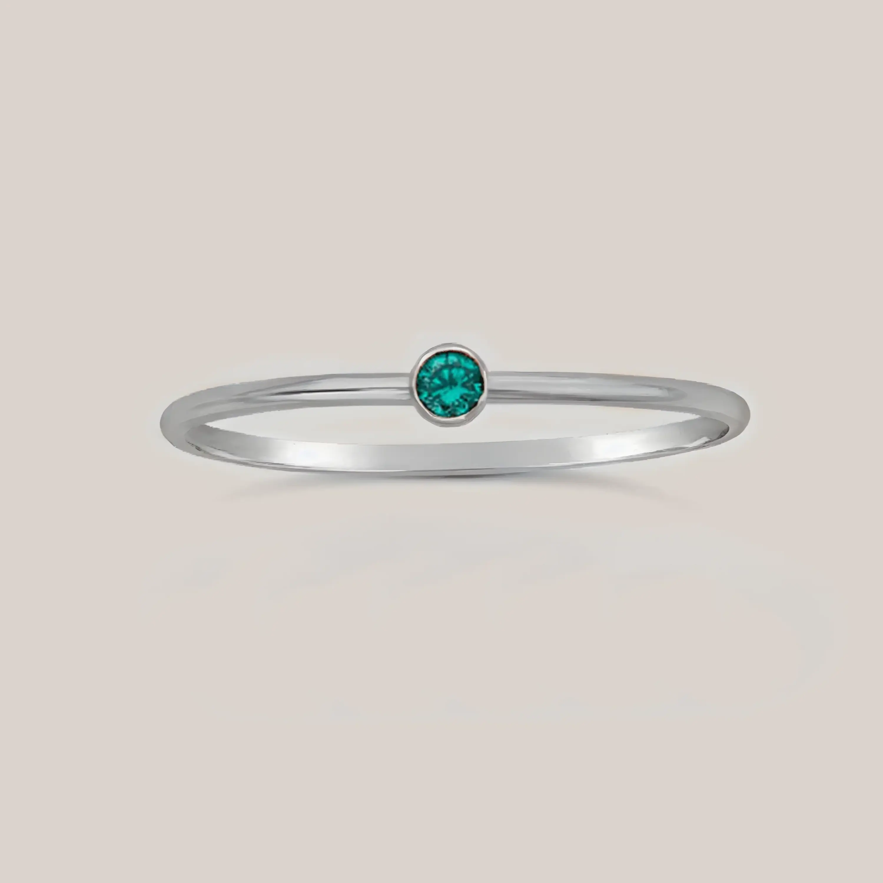 This ring features the May birthstone, Emerald, set in a sterling silver band. It's a stylish choice for May birthdays, blending elegance with the stone’s symbolism of renewal, love, and growth. The sterling silver ensures durability, lasting shine, and a timeless feel. Perfect for stacking. A meaningful accessory for May-born individuals, ideal for everyday wear.