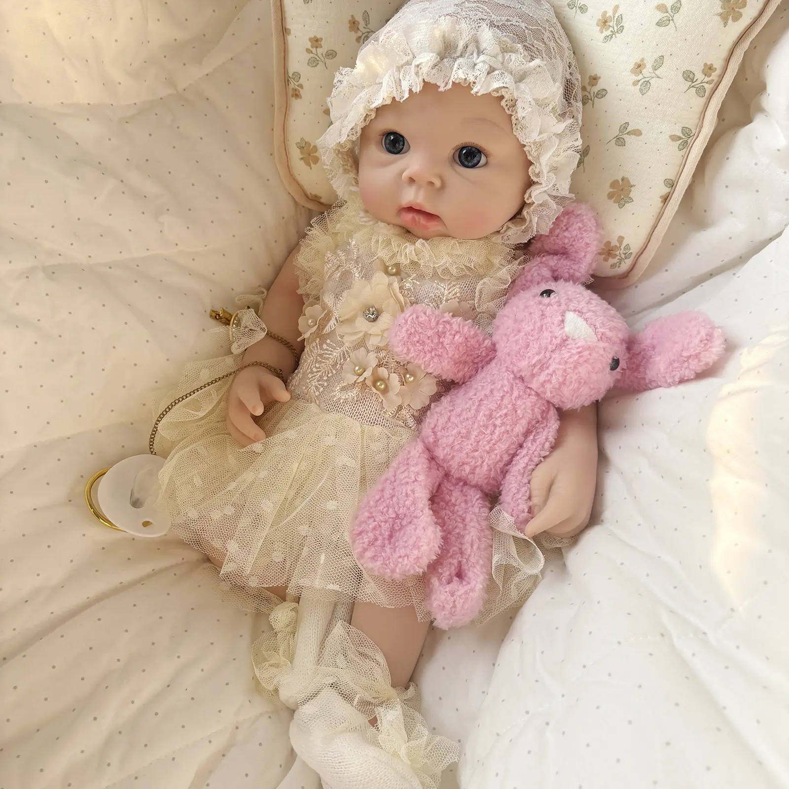 Reborn Silicone Doll Structure: This reborn doll is designed for interactive play, featuring a water-friendly body for bath time fun and an open mouth that accommodates a pacifier. She can even drink water and simulate a realistic 'pee' experience.