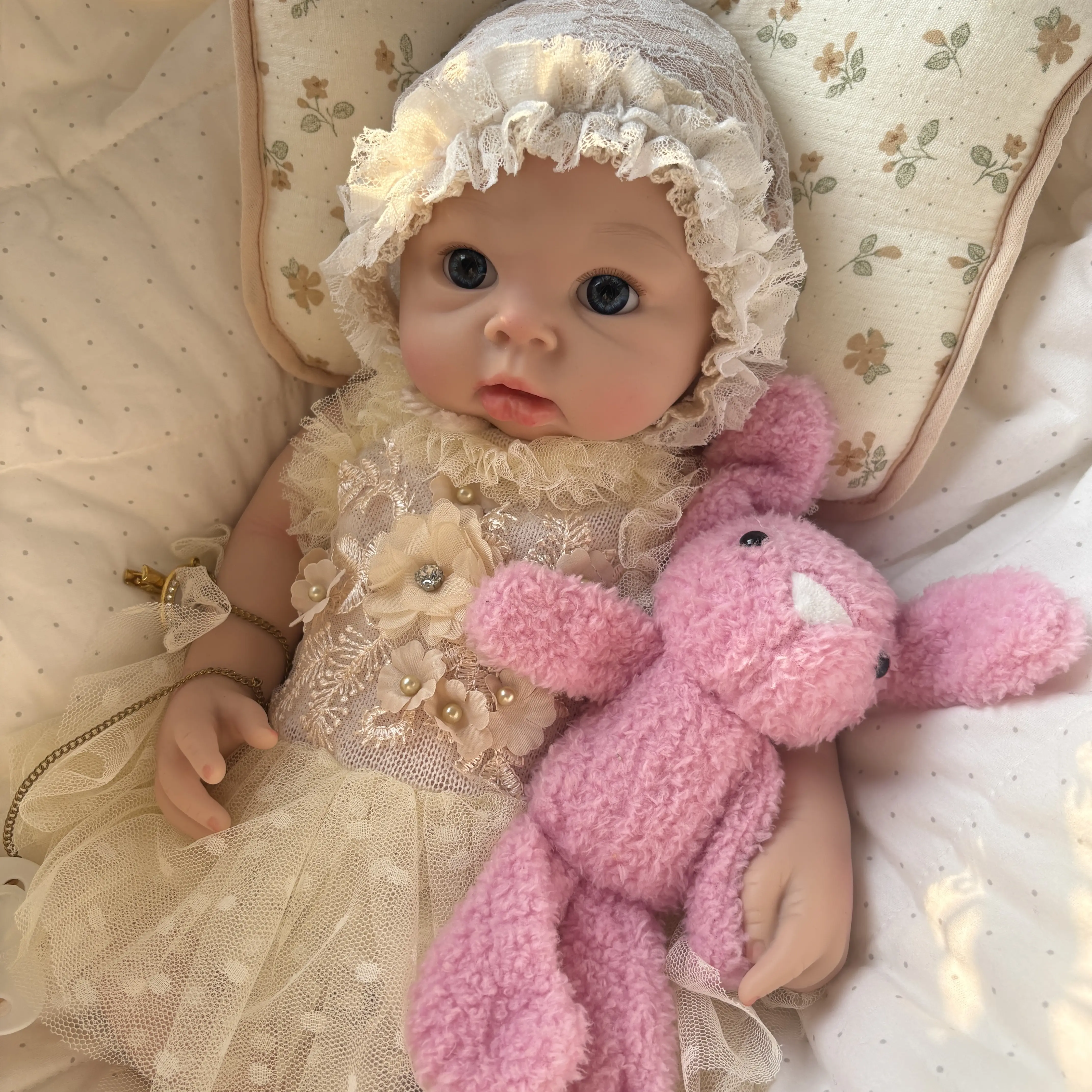 Material: Platinum Liquid Silicone. This reborn realistic doll is masterfully created with high-grade, non-toxic silicone, offering a lifelike touch and flexible movement. Each doll features hand-painted details, ensuring a unique, safe, and durable companion for age 3+.