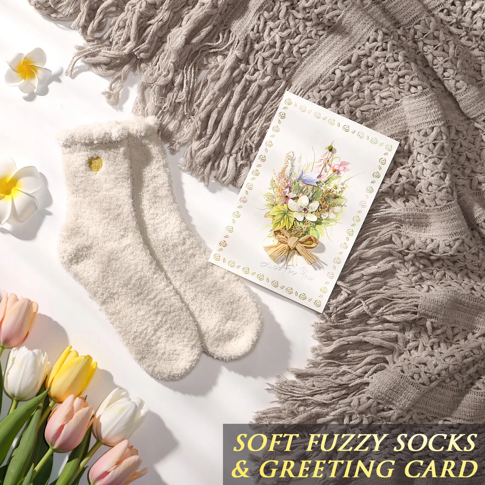 ·Fuzzy Socks: Made of premium polyester, these soft, elastic, and breathable socks feature a love pattern, offering comfort and elegance.