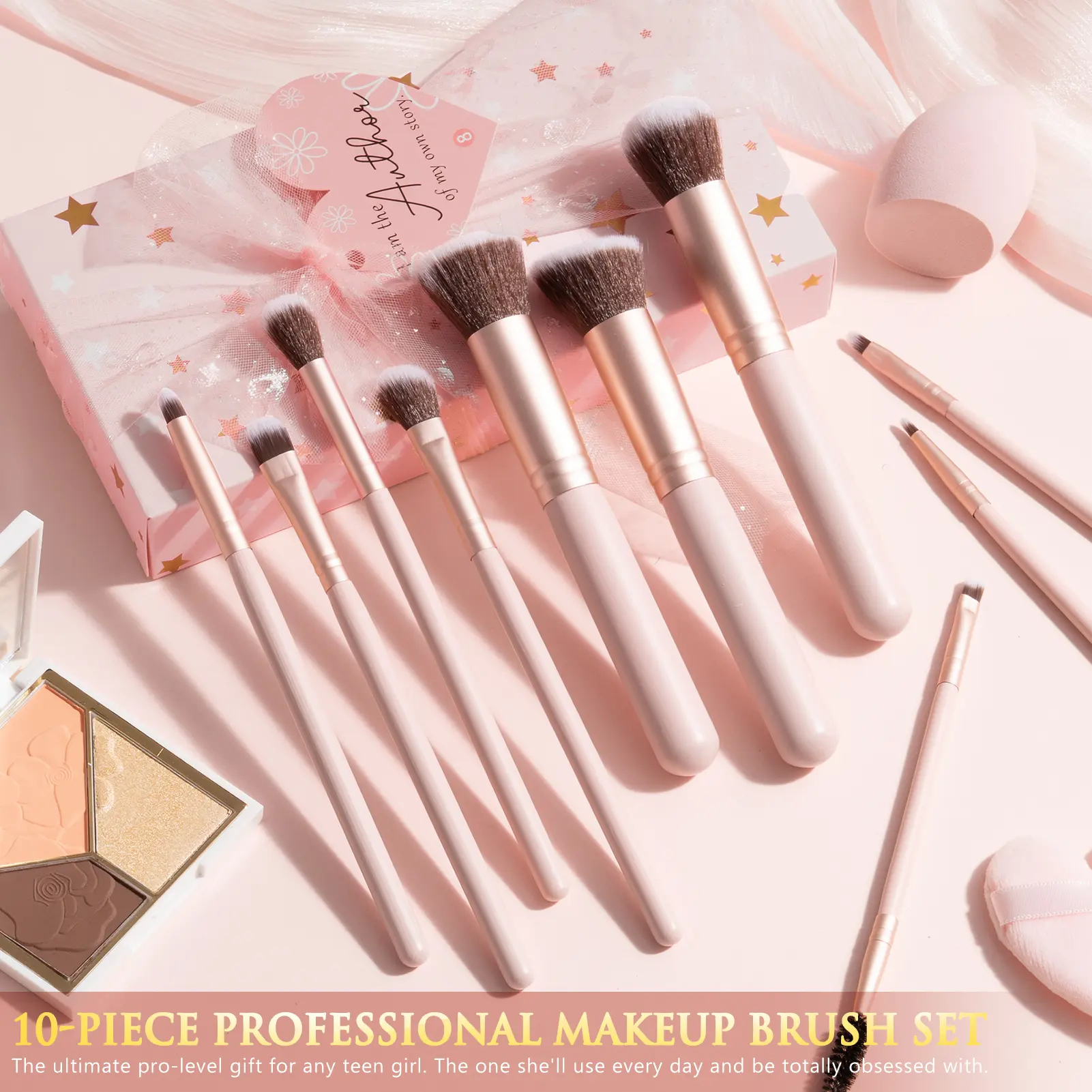 This makeup gift including 10 Makeup Brushes, Floral print Makeup Bag, 11 Makeup Sponges with Bottle, Headband, Dual Wristbands, 3 Flower Hair Clips, 24 PCS Press On Nails with Polish Strip & Glue, 6 Lip Gloss Set, 25 Color Eyeshadow, 3 in 1 Face Palette, Eyebrow Pencil, Eyeliner, Mascara, Bowknot Ribbon, 10 Affirmation Cards & Task Tags. These teen girl gifts trendy stuff cover from makeup tools to cosmetics, more than make up, it's a confidence kit