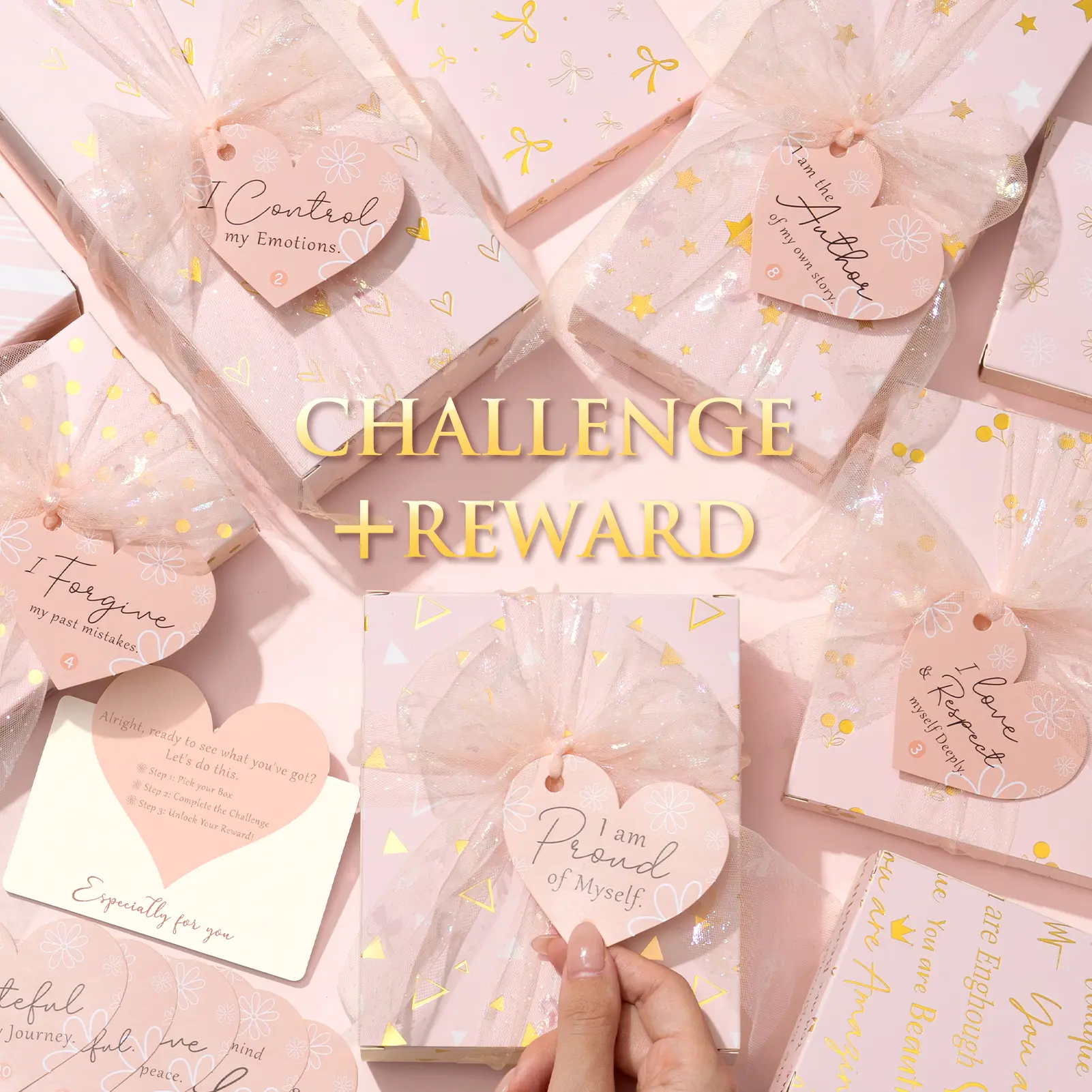 A Thoughtful Valentine’s Gift Set: Surprise her with an elegant all-in-one gift box featuring individually wrapped items for a beautiful unboxing experience. Designed to inspire self-love and confidence, this set includes affirmation cards, fun challenge tags, and decorative ribbons—no extra wrapping needed. A meaningful gift that continues to bring joy beyond Valentine’s Day.