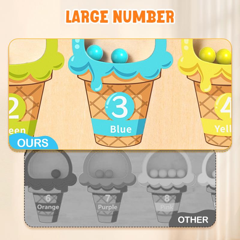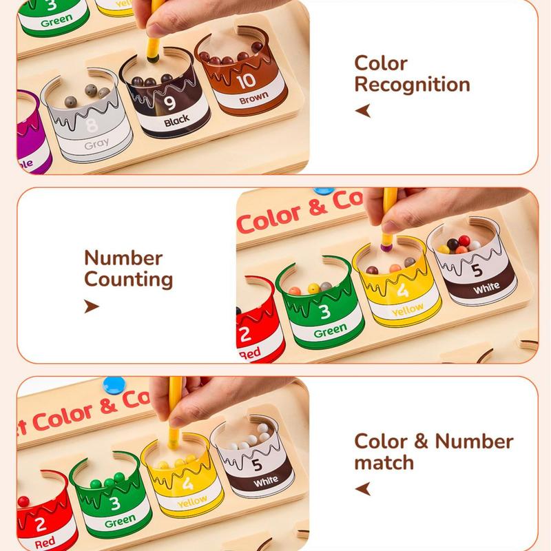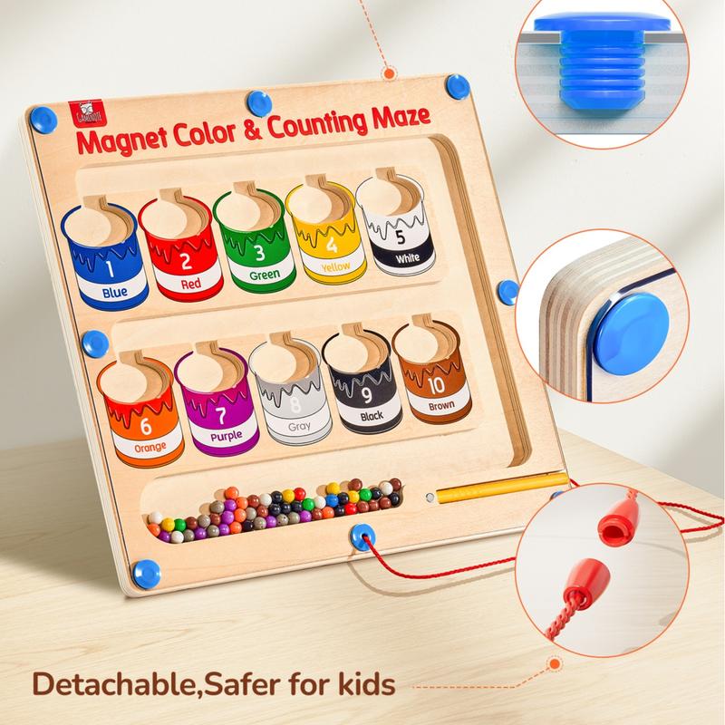 Very durable and easy to store. Promotes number and color recognition as well as enhances eye hand coordination and small motor skills.