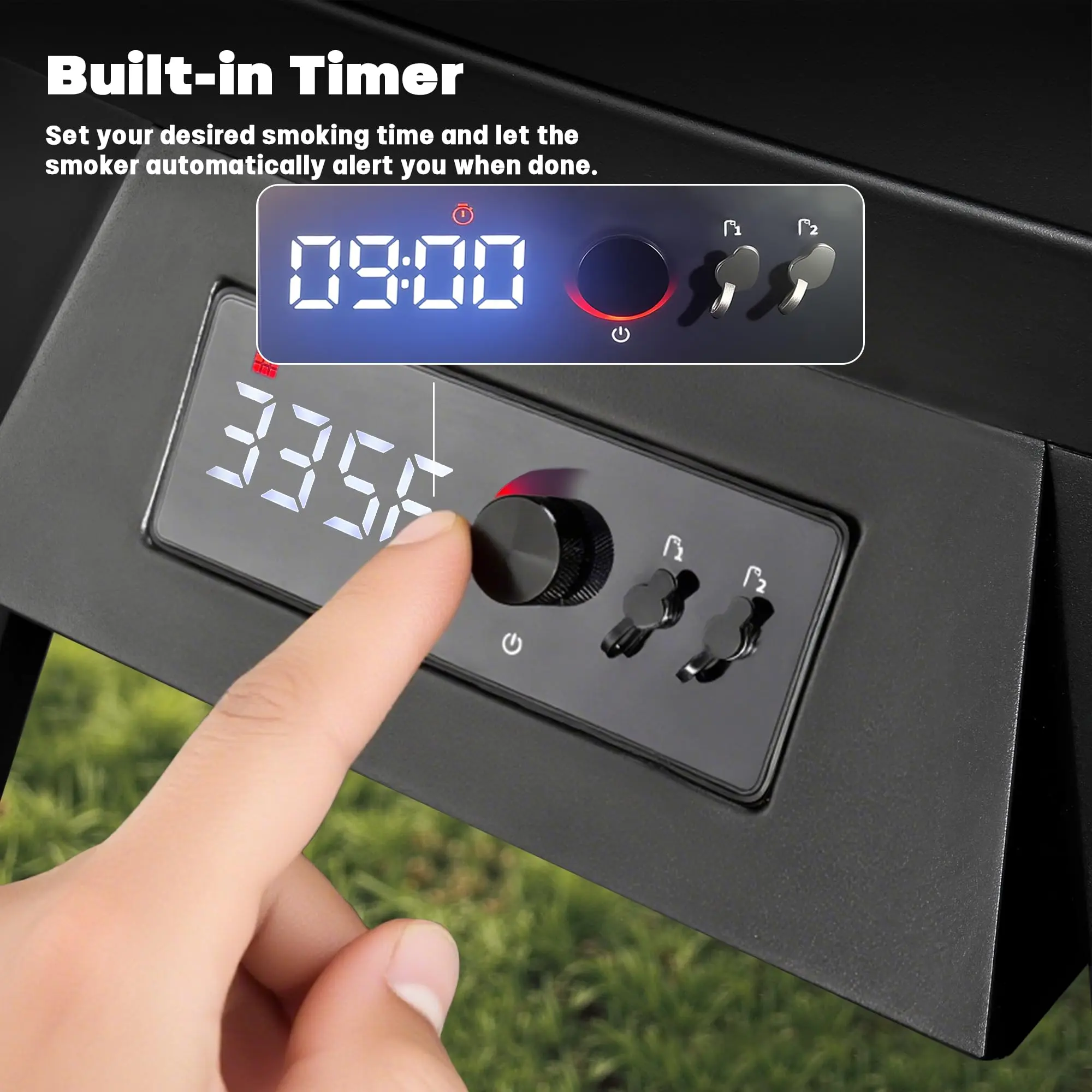 • Smart Timer Function for Hands-Free Smoking: Program the smoker to run for a set duration using the smoke timer function. Perfect for slow-smoking recipes. The unit alerts you automatically, giving you more freedom.