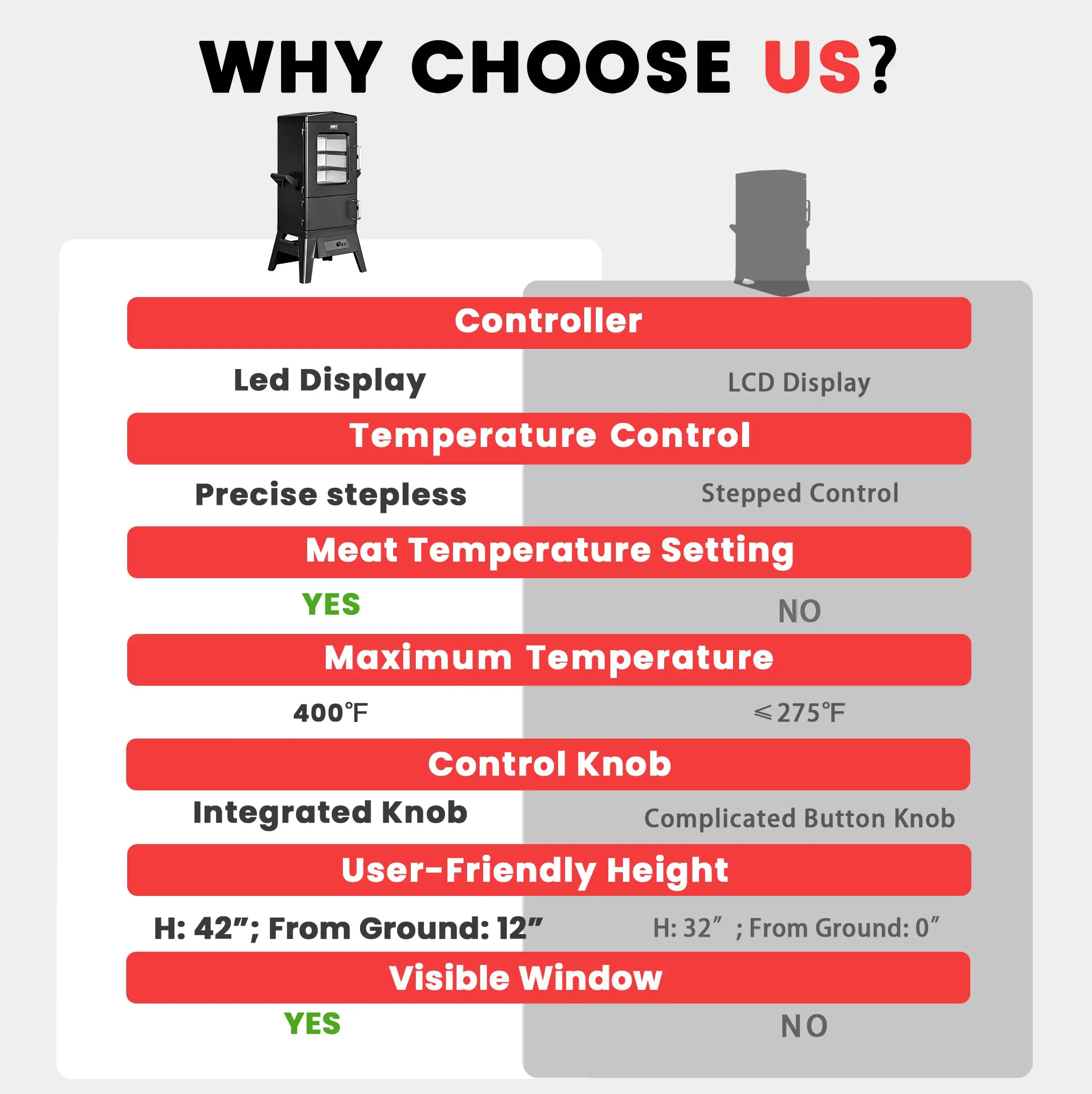 • Insulated Chamber for All-Weather Use: Built with durable insulation and a sealed door, this electric smoker retains heat even in cooler conditions. Perfect for backyard smoking year-round.