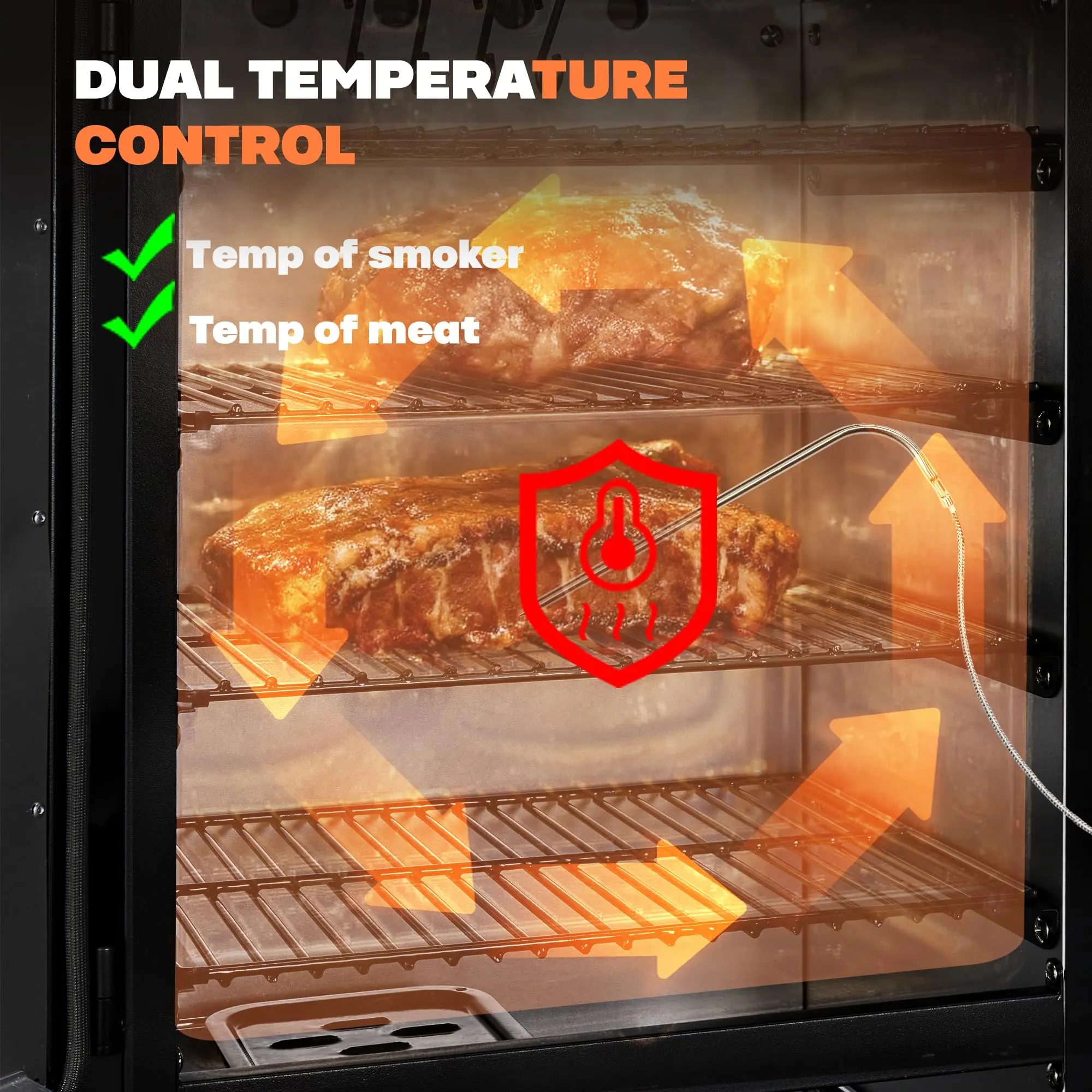 • Precision Digital Temperature Control (100°F–400°F): Set your desired smoking temperature easily with the intuitive digital control panel. Consistent heat ensures juicy, flavorful results every time, whether cold or hot smoking.