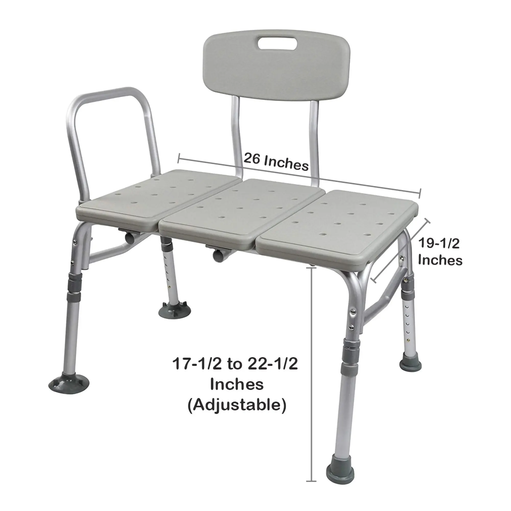 ·Extended bench design and slip-resistant tips provide solution for comfortable transfer from a sitting position into and out of tub