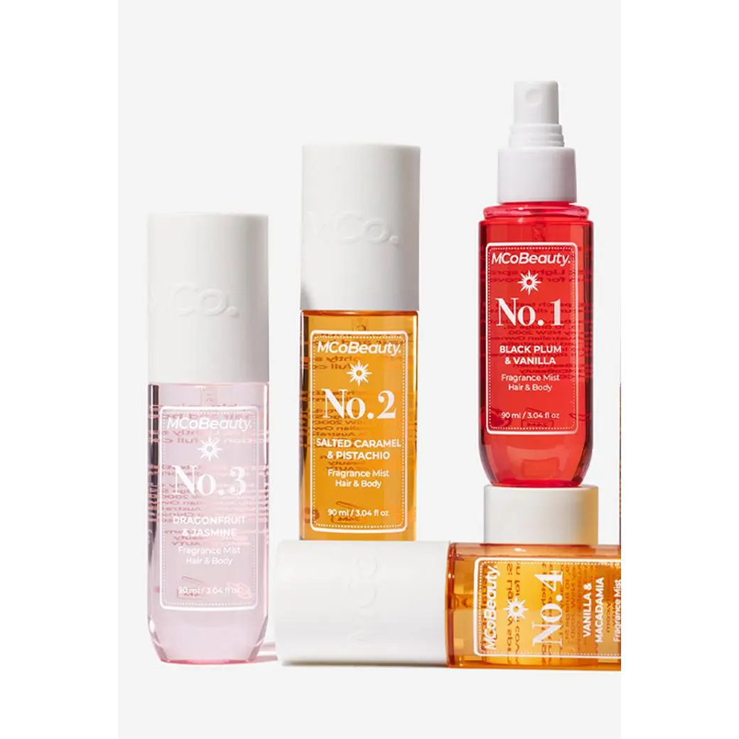MCoBeauty Fragrance Mist Bundle is a bundle with all of our most popular fragrance mist. Our mist have a light and enticing spray that finishes every look, day or night. Spritz body and hair for an instant burst of refreshing fragrance that captures the essence of indulgence. Fragrance Notes: A playful blend of fruity, floral, creamy, sweet, and woody accords. Each mist features layered notes like violet, jasmine, vanilla, caramel, coconut, and sandalwood to create a unique and irresistible scent experience.