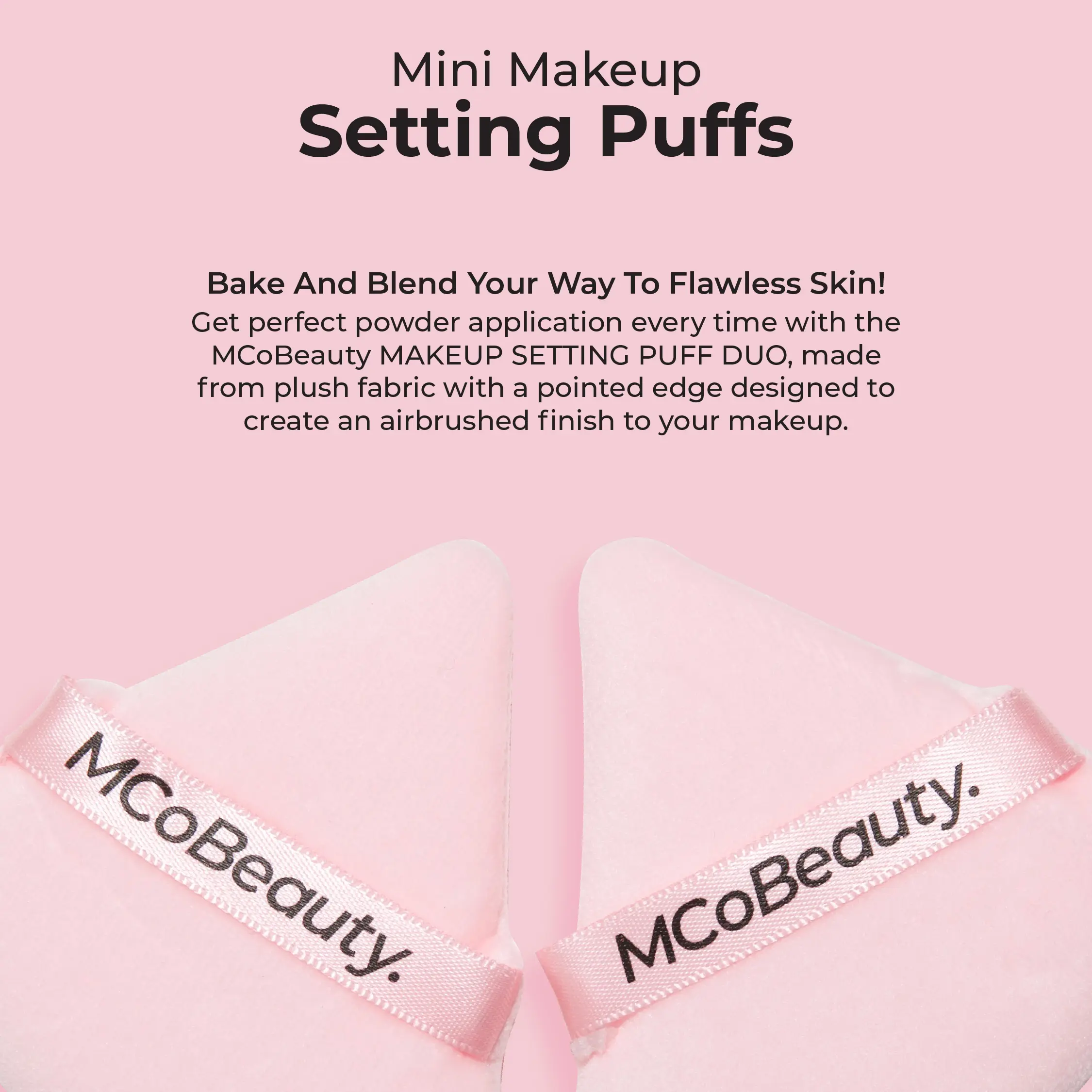 MCoBeauty MINI MAKEUP SETTING PUFFS 4 PACK provides perfect powder application every time. Made from plush fabric with a pointed edge designed to create an airbrushed finish to your makeup. The soft fabric lifts product with ease, distributing it evenly and easily to even the smallest of areas making it an essential in any beauty toolkit.