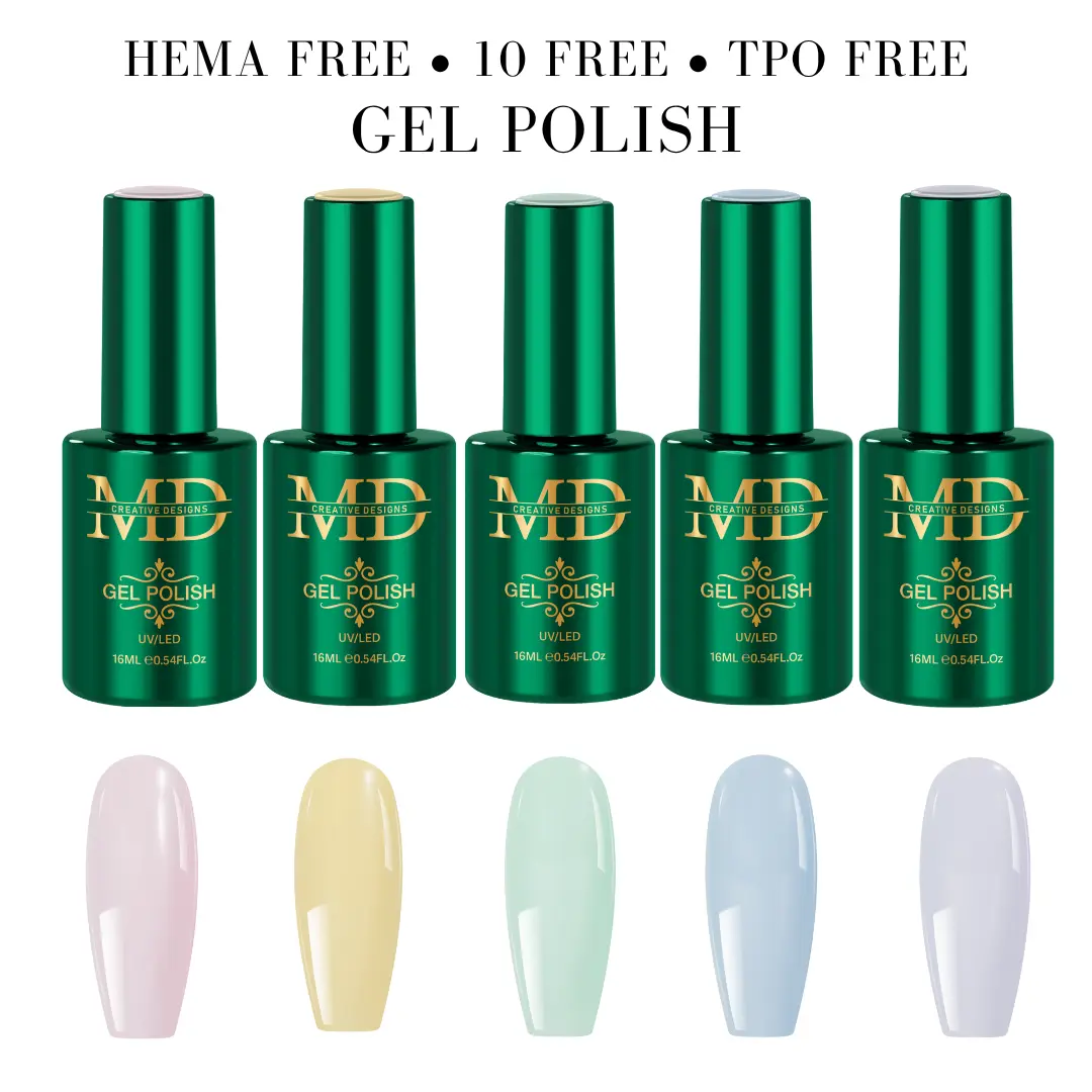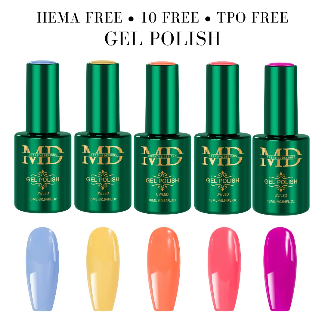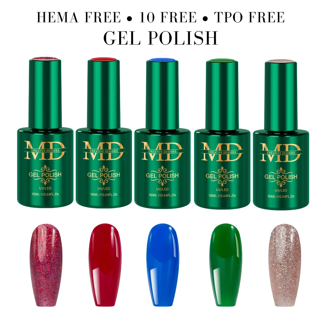· Safe & Clean Formula: All MD Nail polishes are 10-Free and HEMA-Free — meaning no “toxic trio” (formaldehyde, dibutyl phthalate, toluene), no harsh resins, parabens, or animal ingredients. A healthier choice for nail artists and clients.