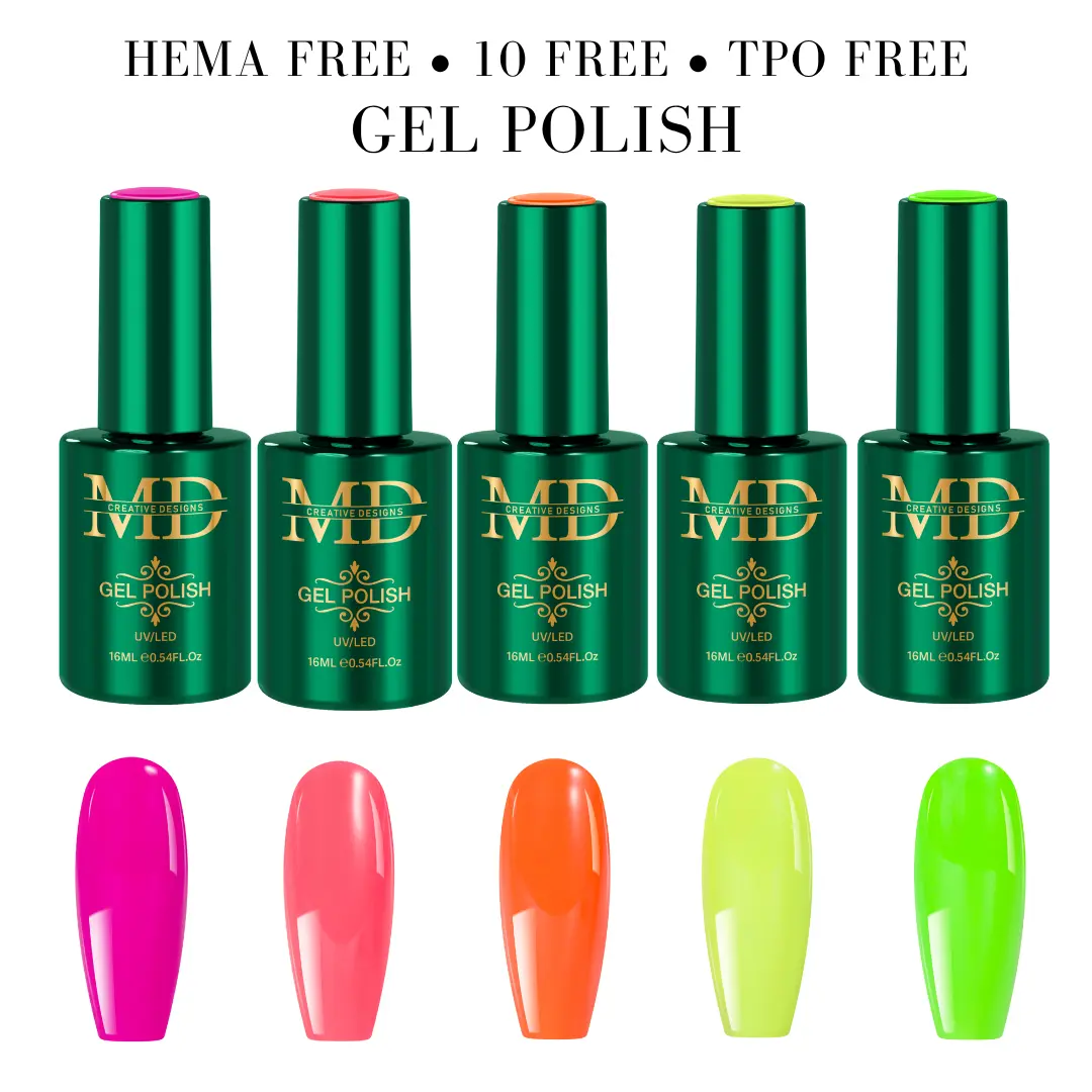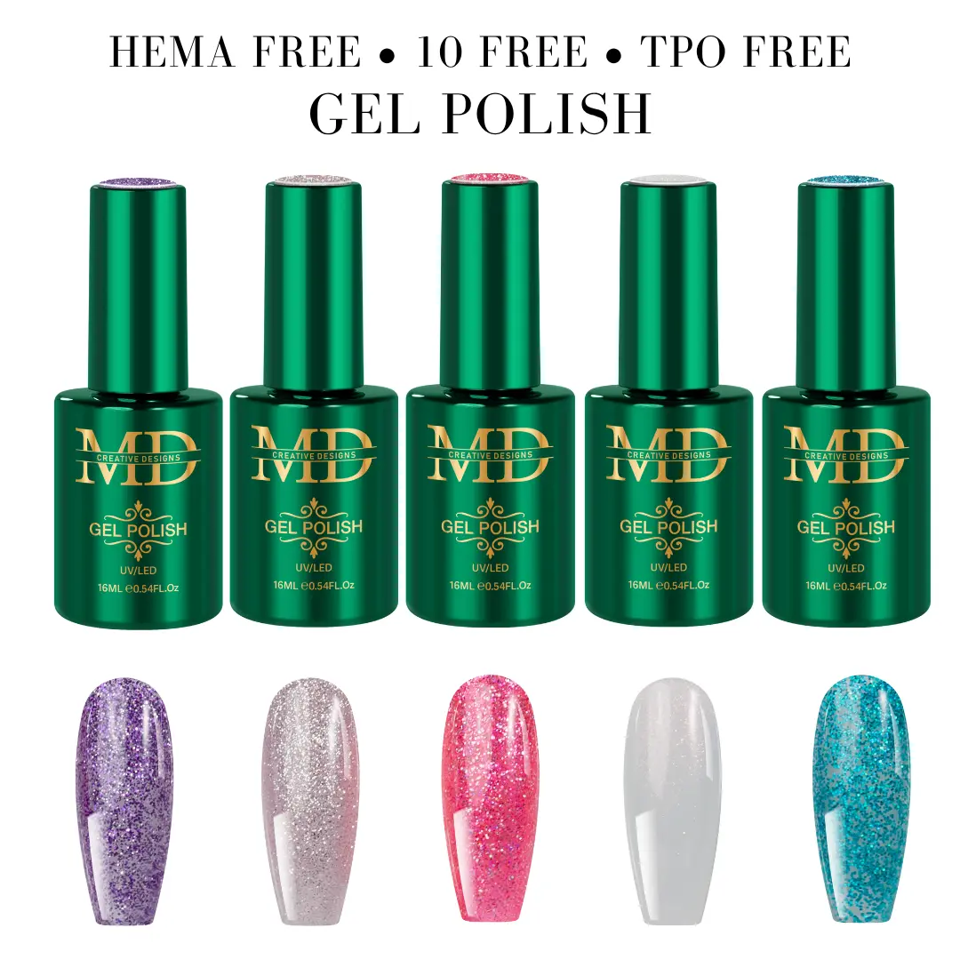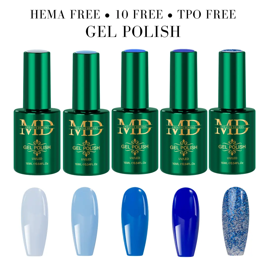 · Safe & Clean Formula: All MD Nail polishes are 10-Free and HEMA-Free — meaning no “toxic trio” (formaldehyde, dibutyl phthalate, toluene), no harsh resins, parabens, or animal ingredients. A healthier choice for nail artists and clients.